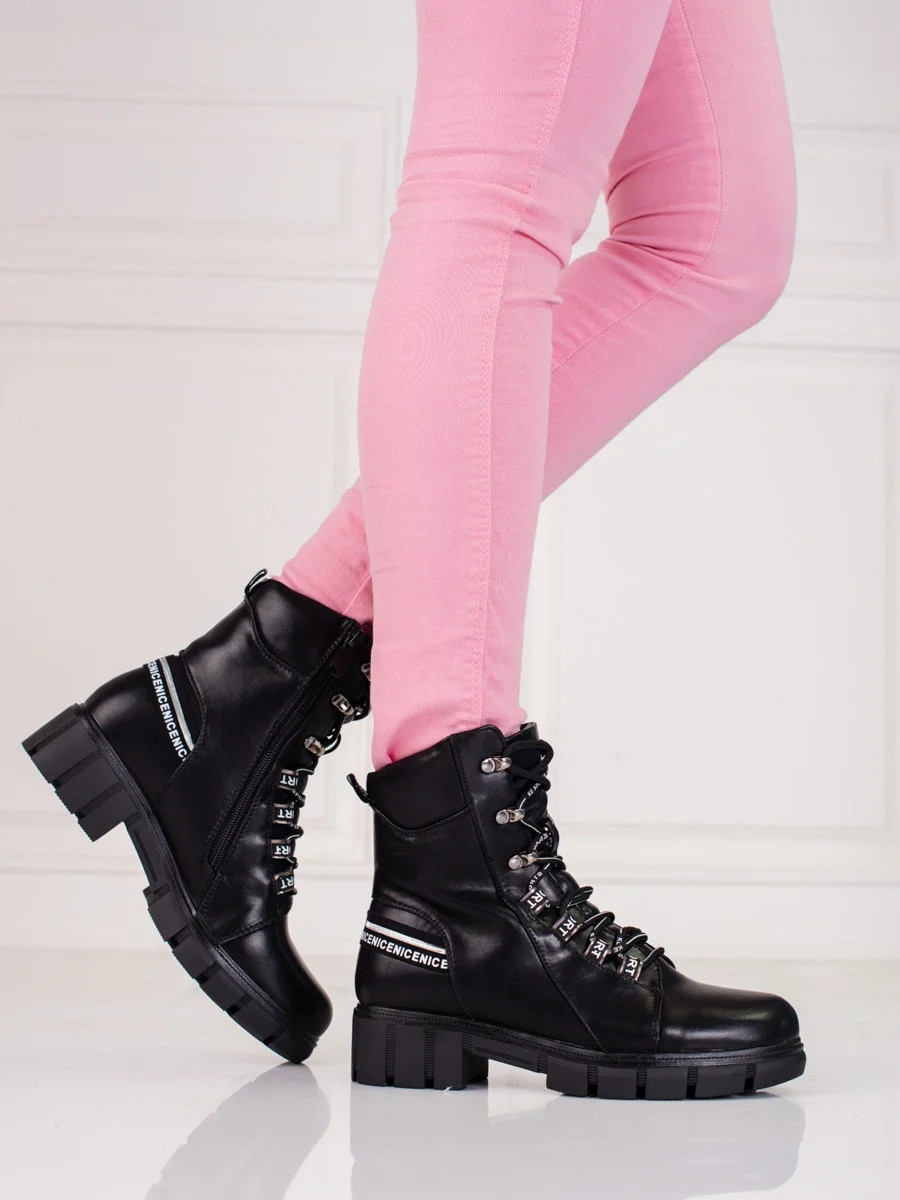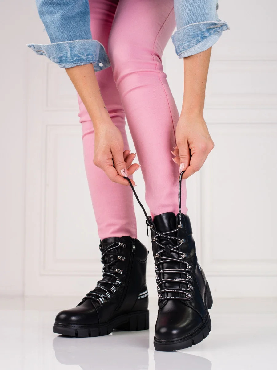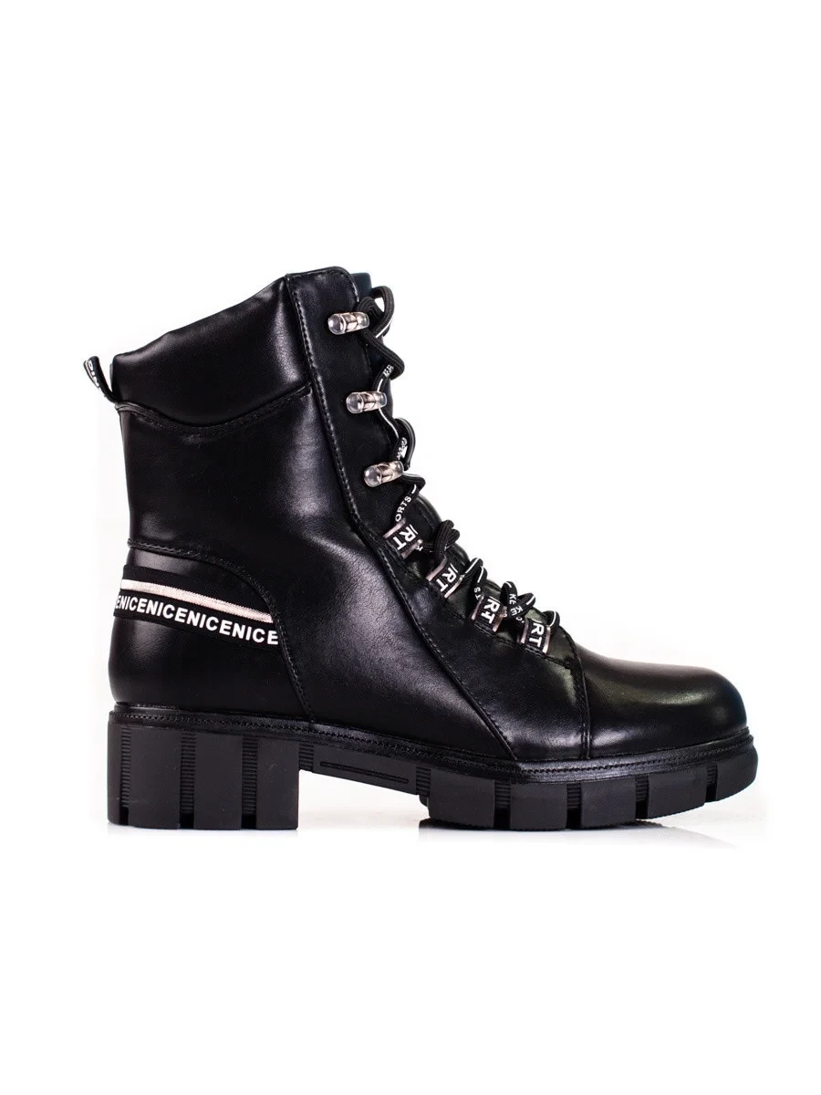 Výborné kotníčkové boty černé dámské na širokém podpatku