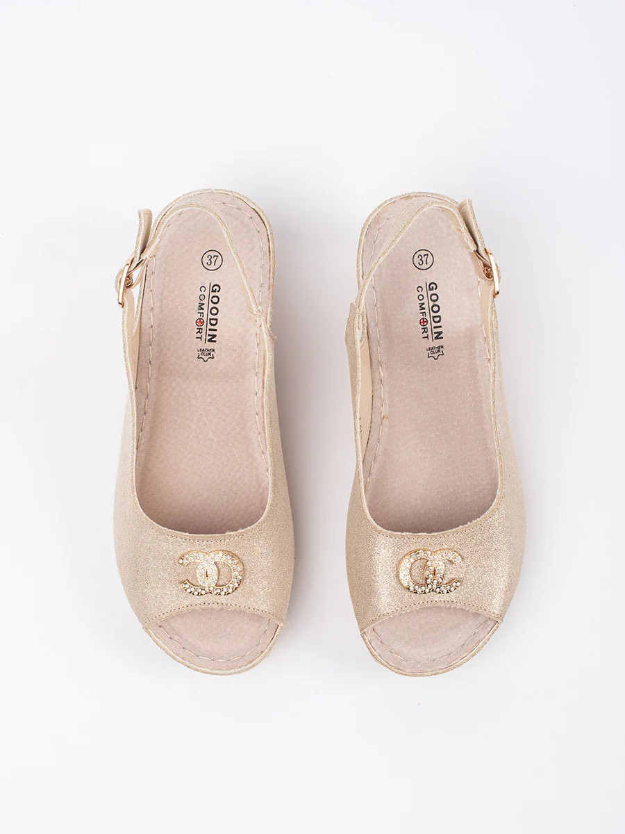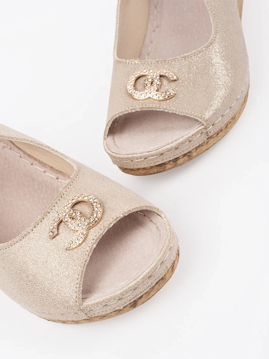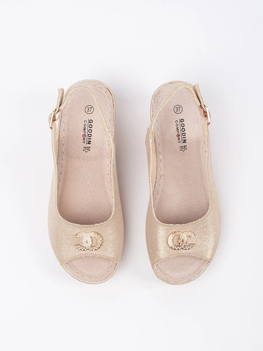 Výborné sandály dámské Jasnobeżowy na klínku