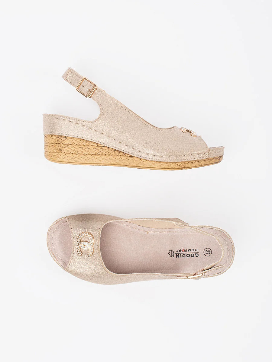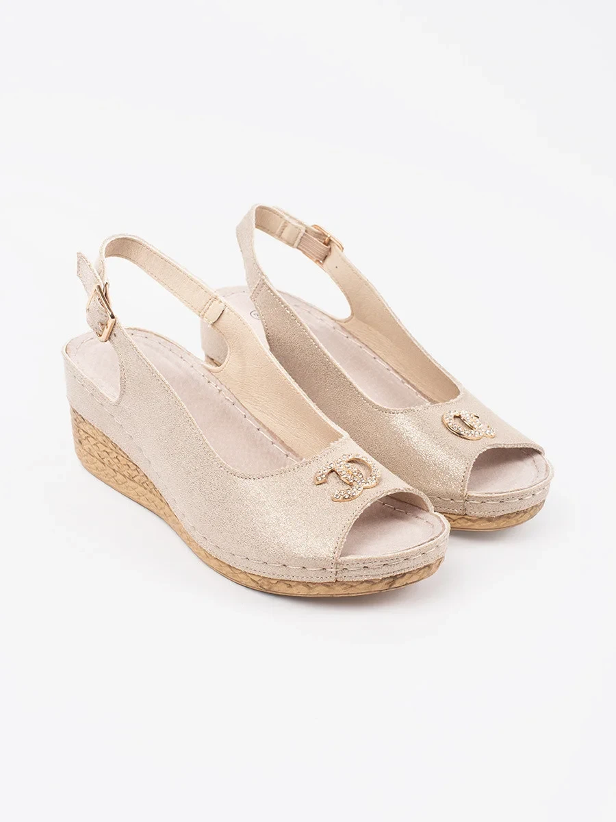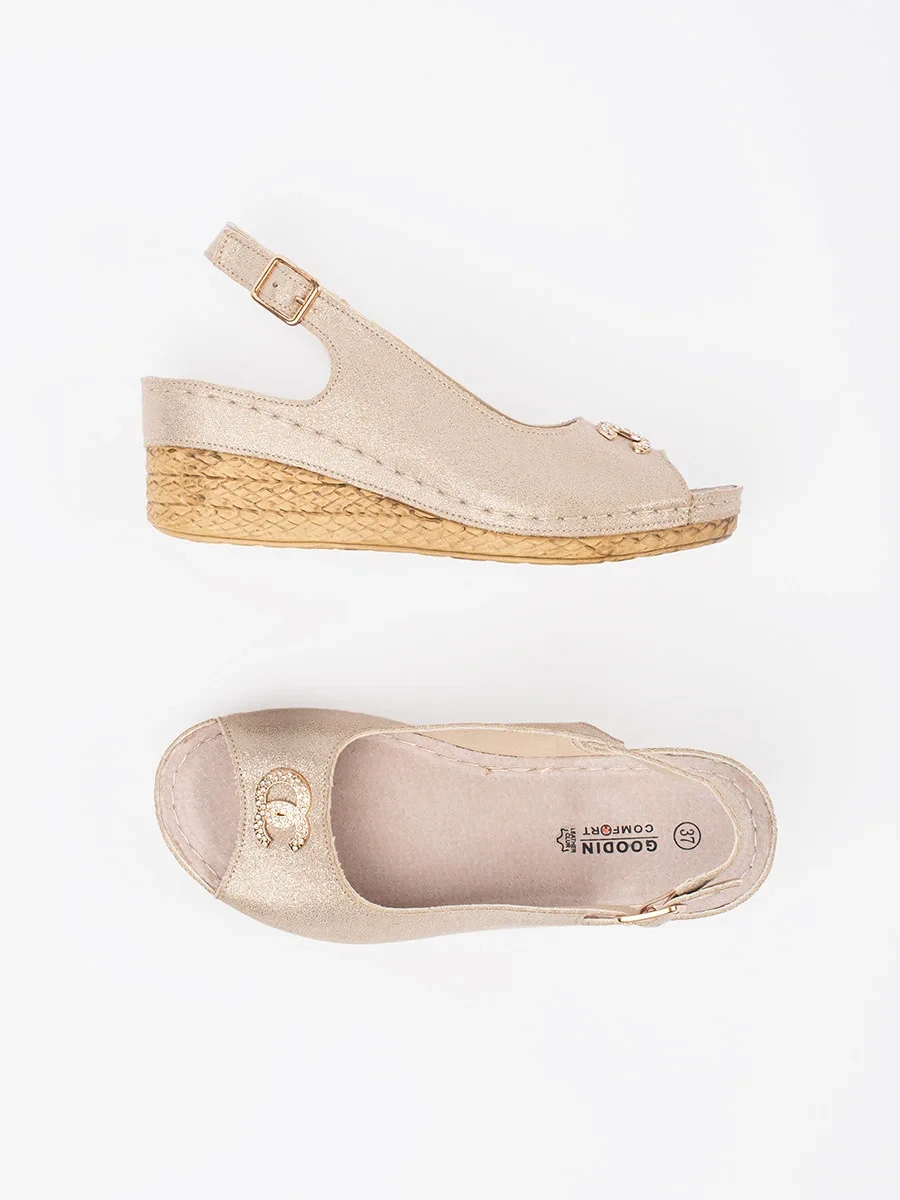 Výborné sandály dámské Jasnobeżowy na klínku