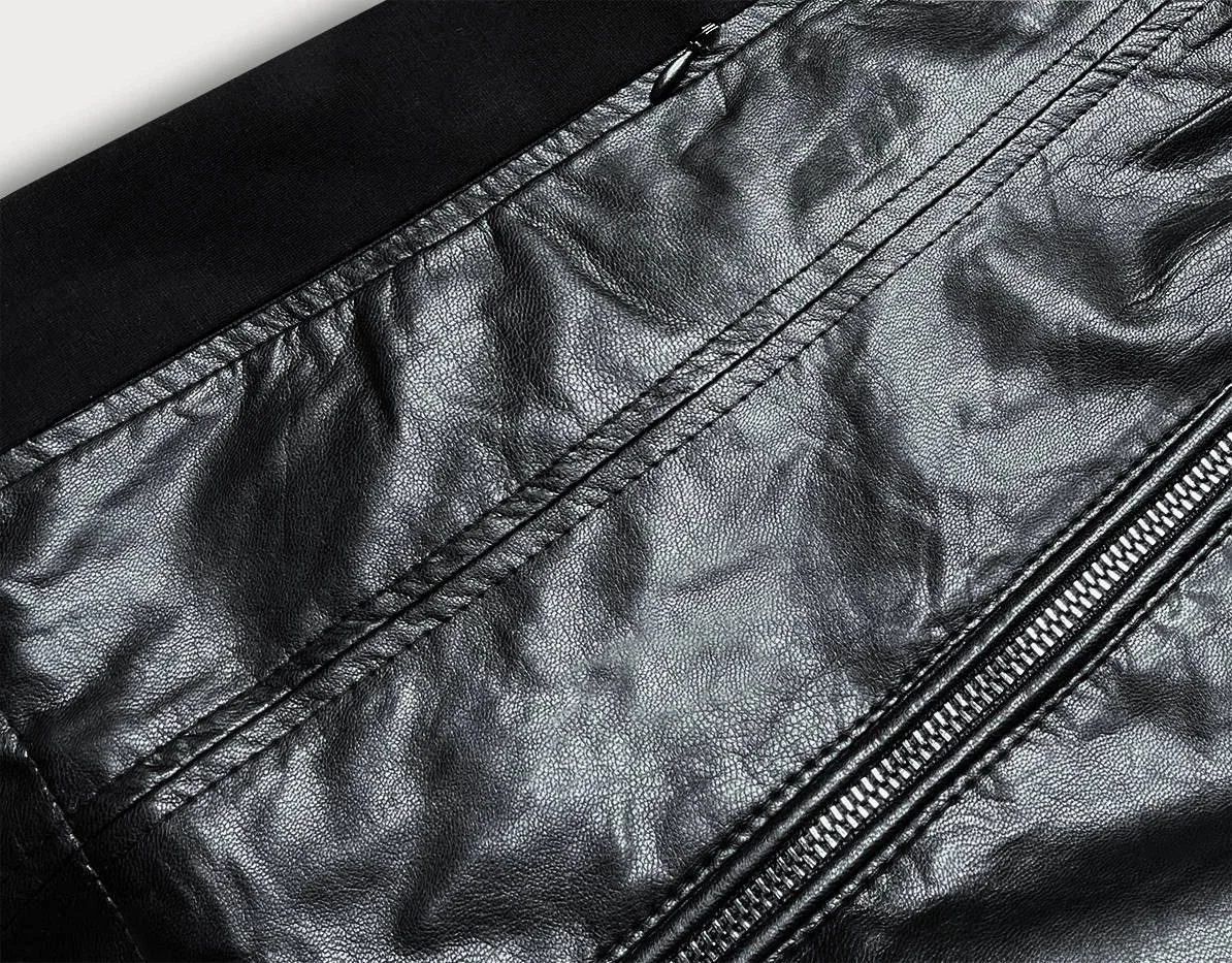 Krátká bunda z eko kůže a tkaniny