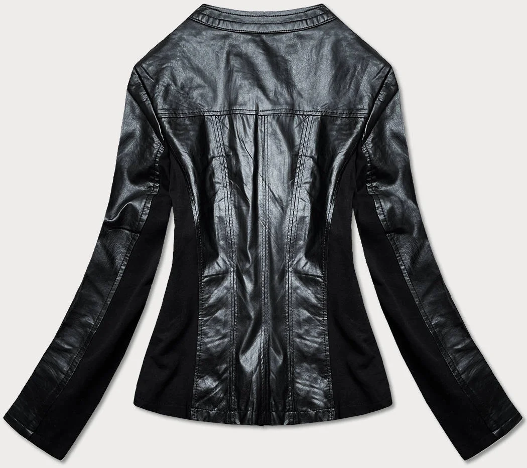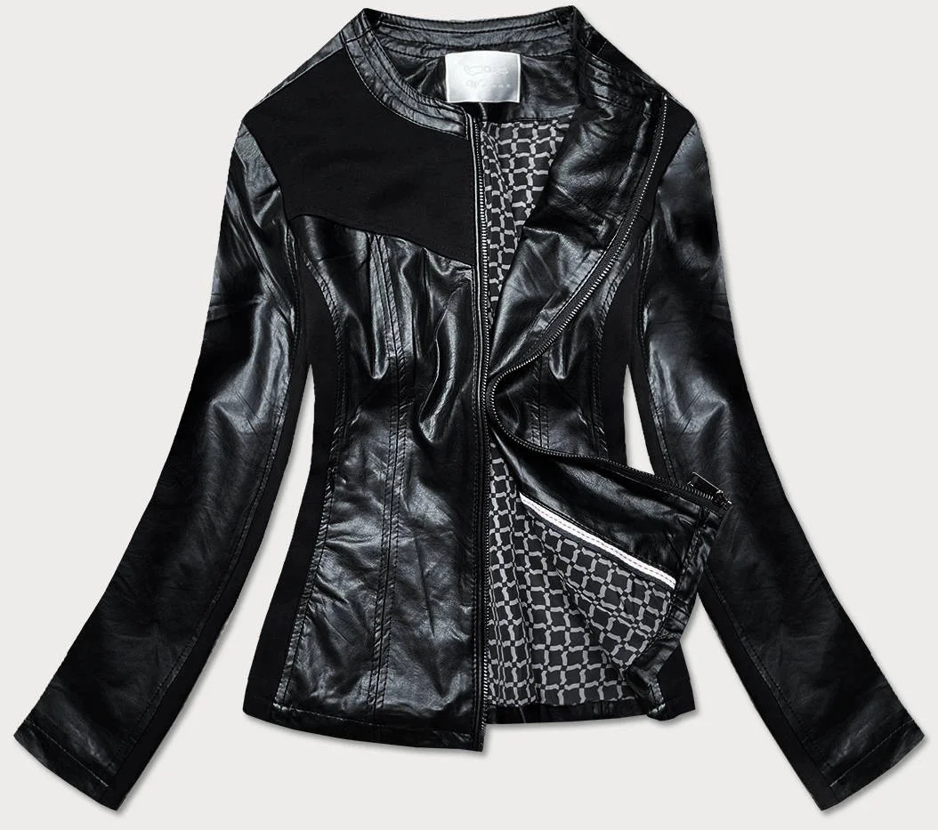 Přidání recenze k Vypasovaná černá dámská bunda s různých spojených materiálů (752ART)