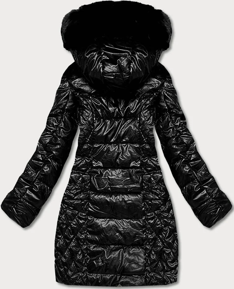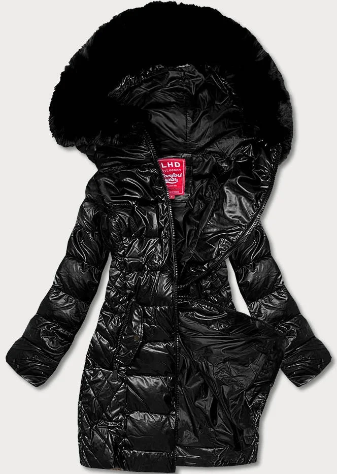 Vypasovaná černá dámská zimní bunda (2M-028)