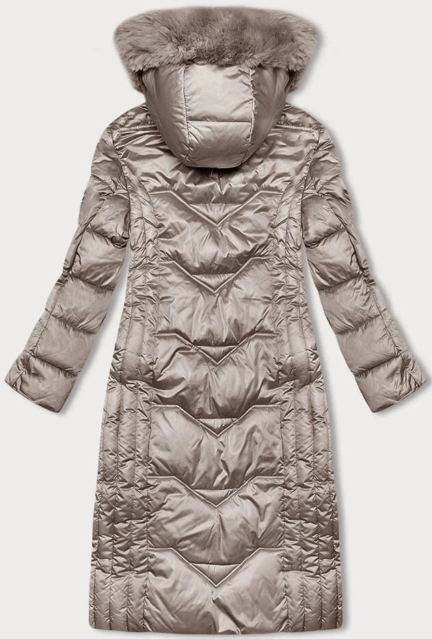 Vypasovaná dlouhá dámská zimní bunda v barvě cappuccino S'west (B8201-12)
