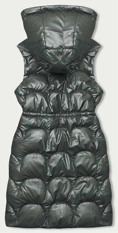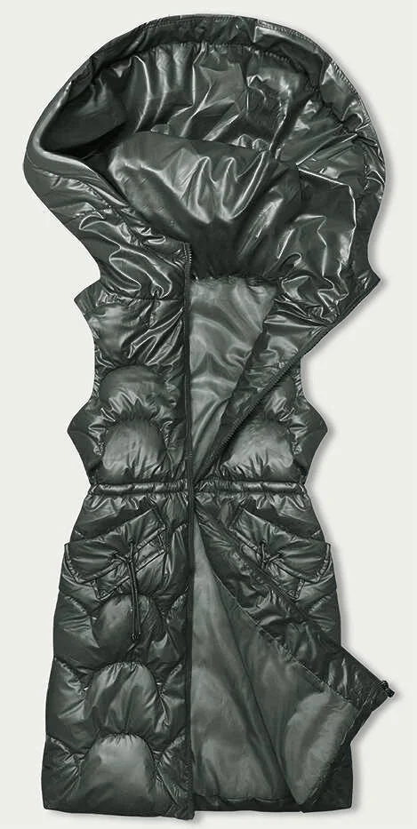 Vypasovaná vesta v khaki barvě s kapucí (B8173-11)