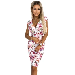 Přidání recenze k Vypasované dámské šaty s přeloženým obálkovým výstřihem a se vzorem květů model 18532550 - numoco