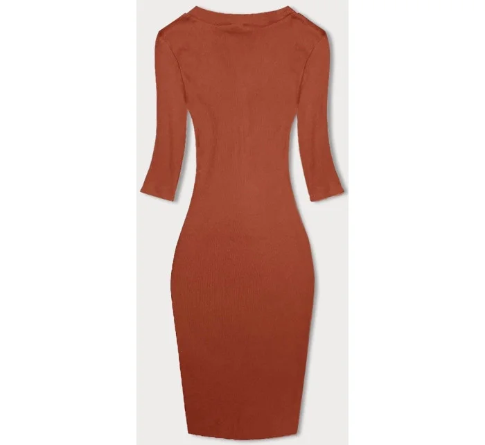 Vypasované oranžové dámské žebrované šaty (5579-20)