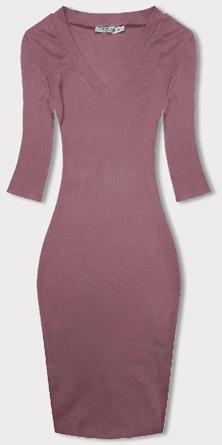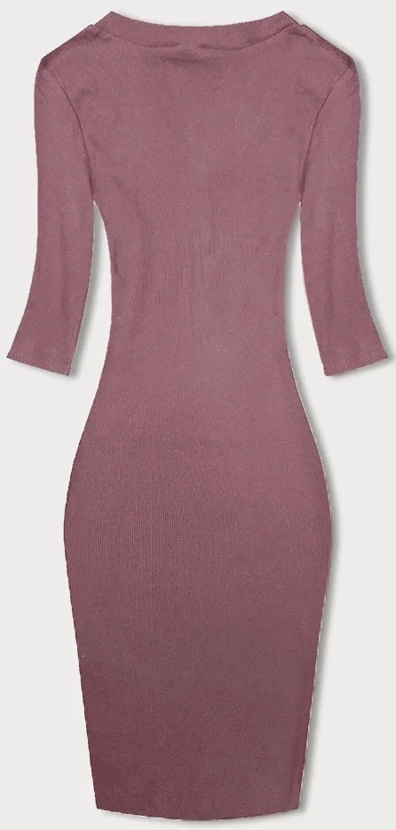 Vypasované žebrované dámské šaty ve špinavě růžové barvě model 19447285 - Factory Price