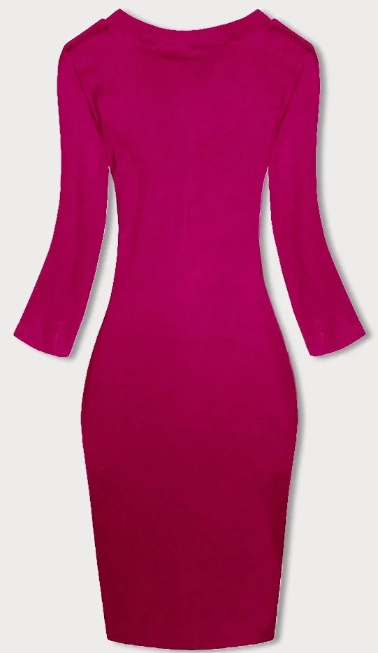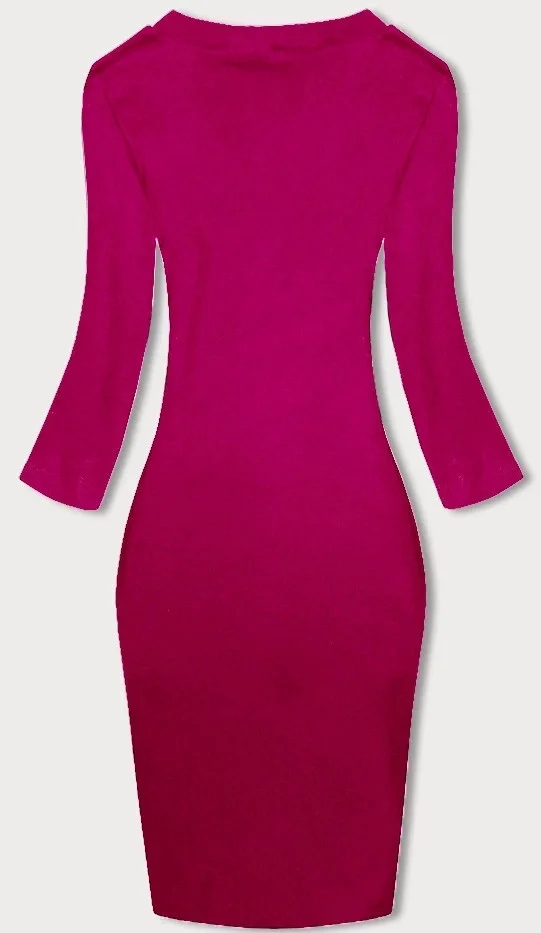 Vypasované žebrované šaty ve fuchsijové barvě s kulatým výstřihem (5131-08)