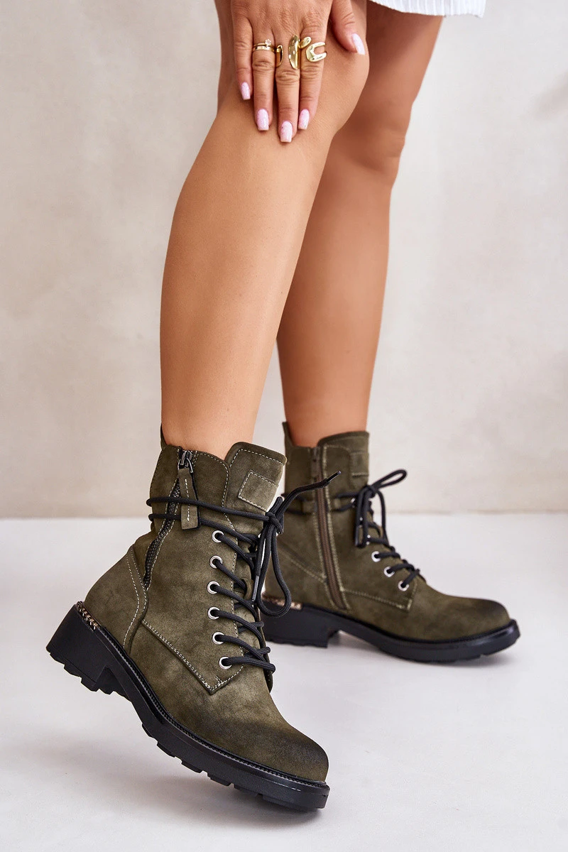 Boty jsou vyrobeny z ekologické kůže. Mají zipy na obou stranách, což usnadňuje obouvání. Jsou zateplené příjemným na dotek obuvnickým plédem. Efektní šněrování umožňuje dokonalé přizpůsobení bot. Mají ozdobný prvek v oblasti podpatku. Při výběru velikosti se řiďte tabulkou velikostí.