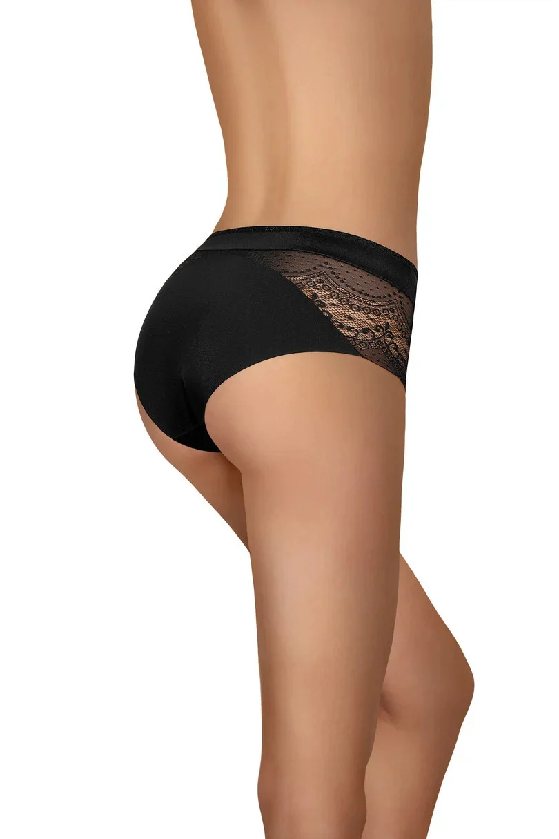Vysoké dámské kalhotky z jemného mikrovlákna. Na přední straně jsou všivky v jemné krajky. Nohavičky šité laserem a nejsou vidět pod oblečením. Složení: 85% polyamid, 15% elastan.