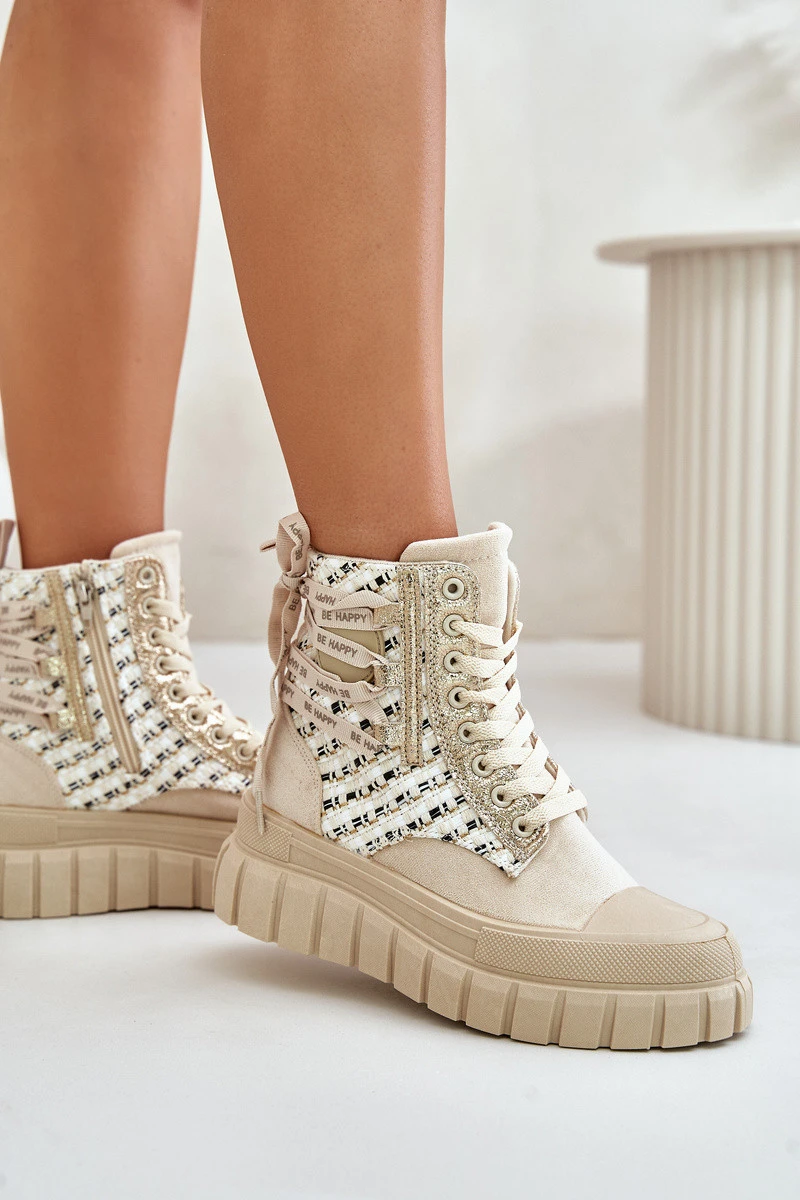 Vysoké Dámské Tenisky Na Masivní Platformě Světle Béžové Kernia