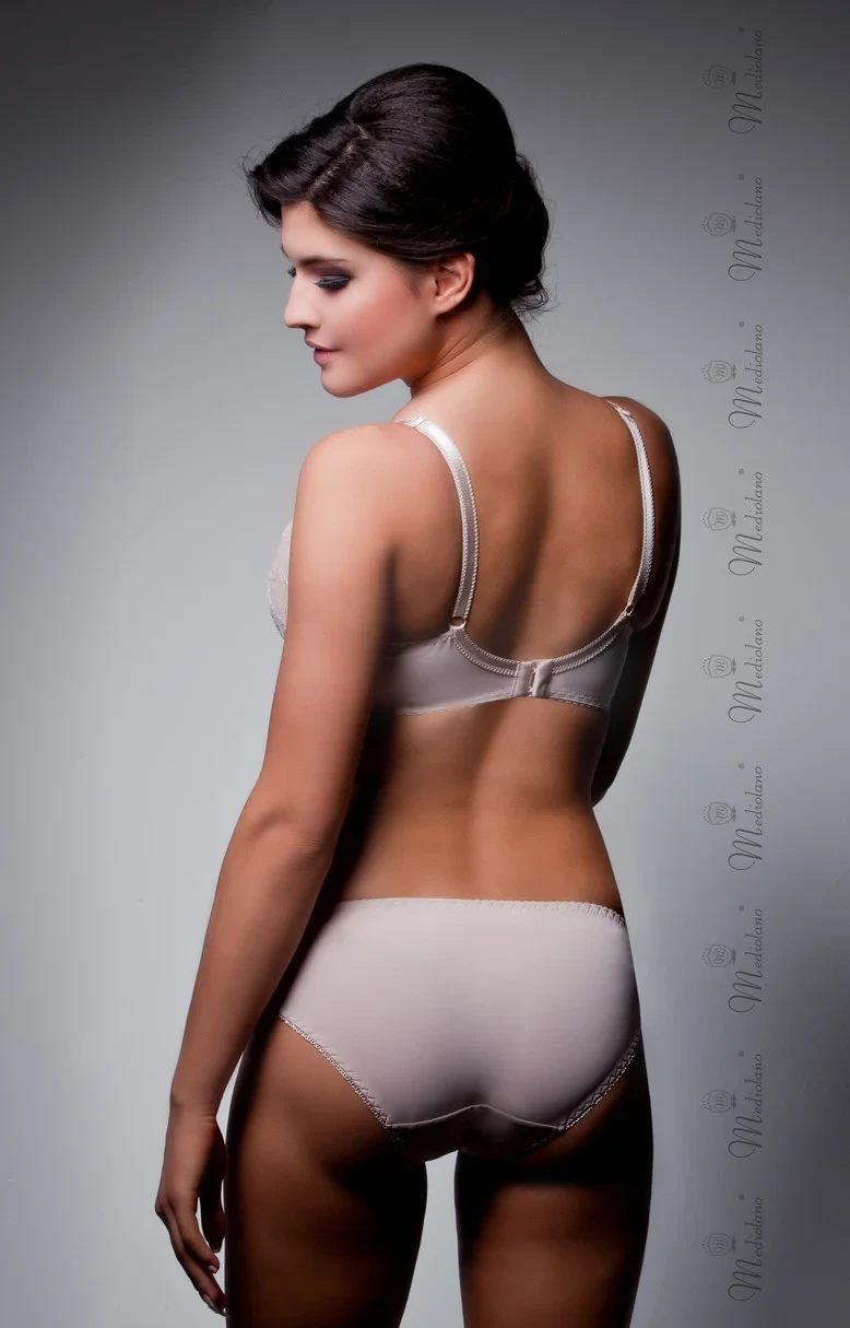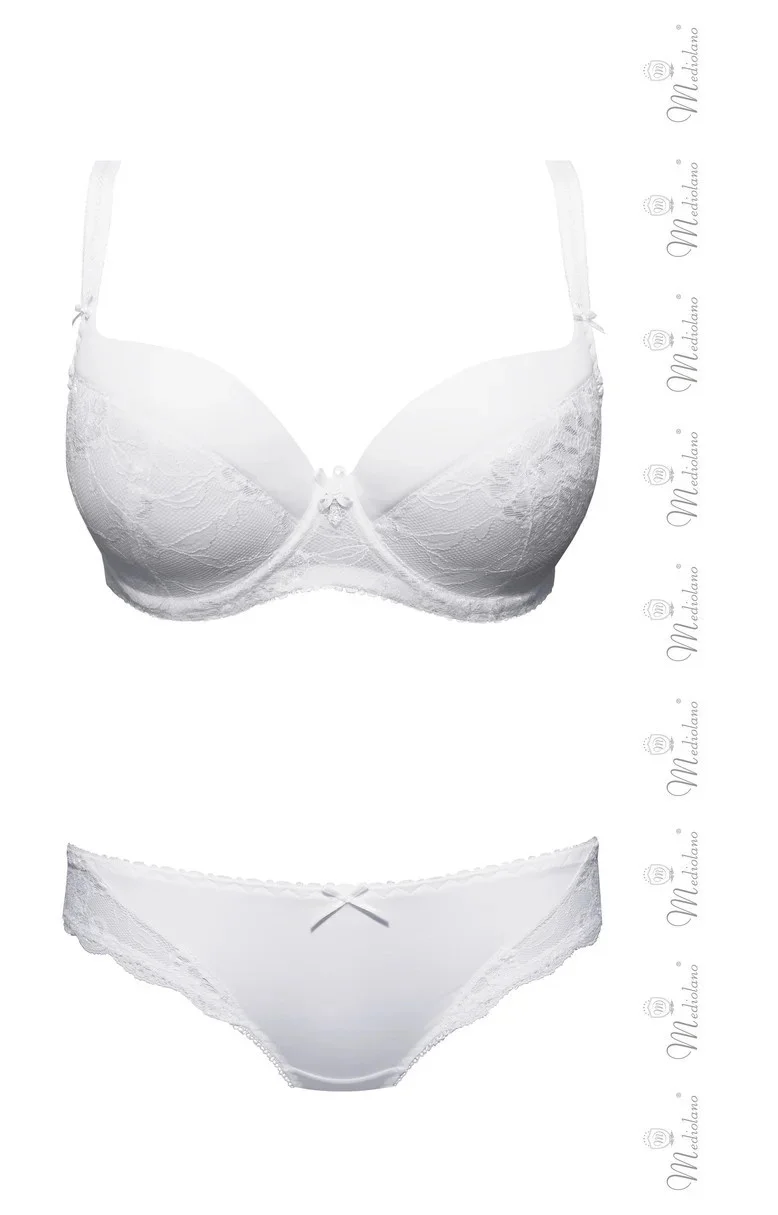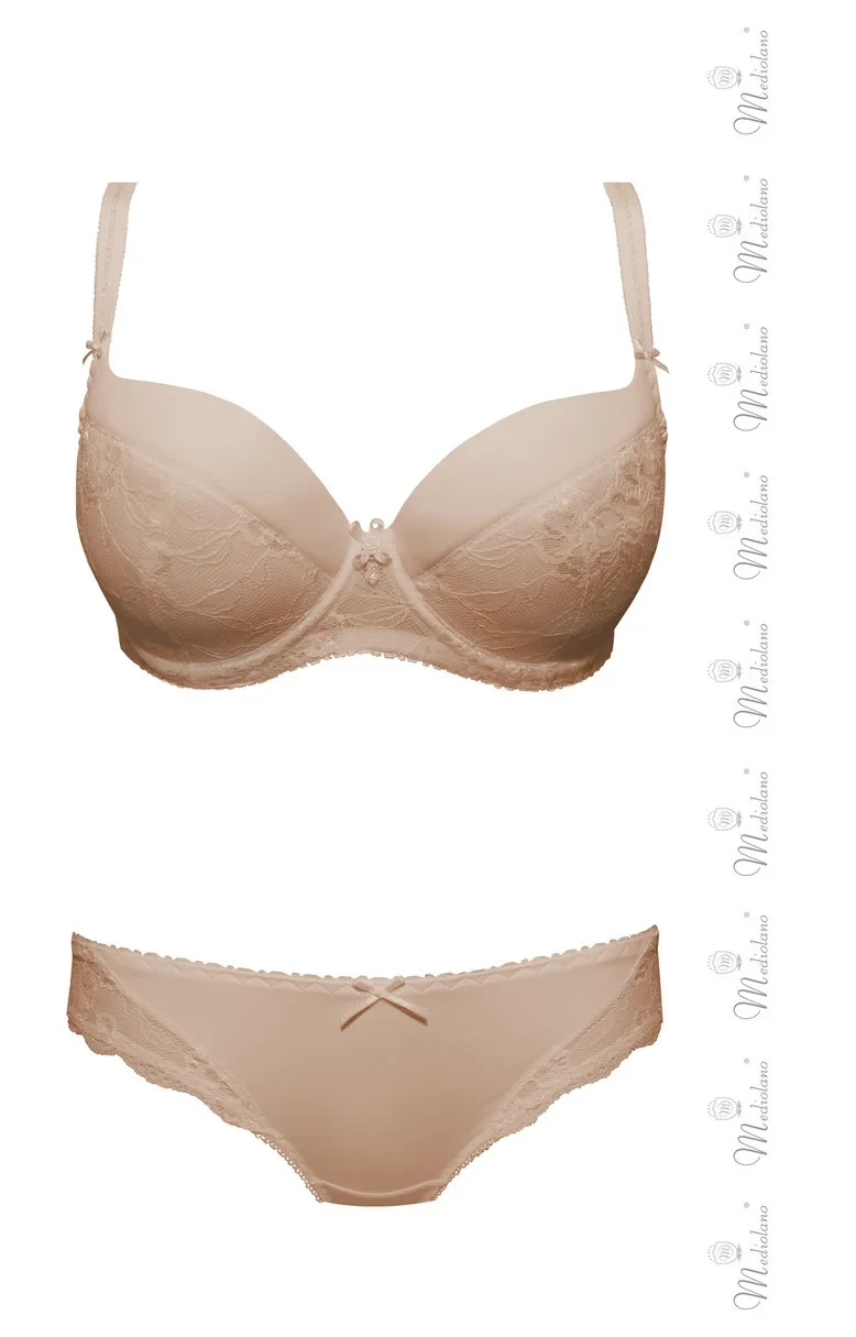 Vrchní část košíčků pokrývá lehce lesklá látka příjemná na dotyk. Spodní část košíčků a můstek jsou ozdobené hustou krajkou. Vrchní i spodní část košíčků je vyztužená, a proto poprsí získává vždy dokonalý tvar. Ramínka je možné nastavit, ale nelze je odepnout.