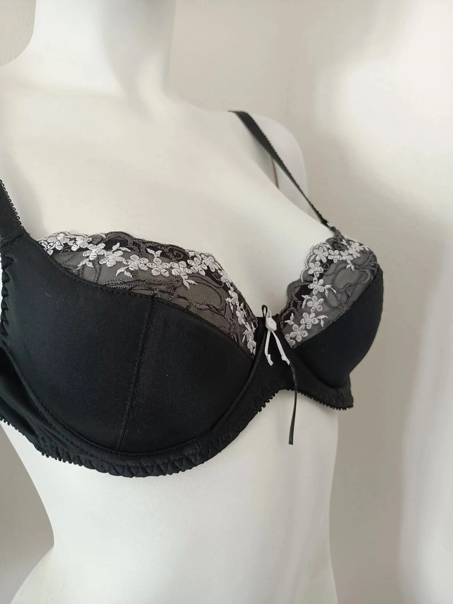 Dámská vyztužená podprsenka, s kosticí, spodní část vyztužená, vrchní část z komfortní krajky. Posouvací ramínka, zapínání vzadu na dva háčky.