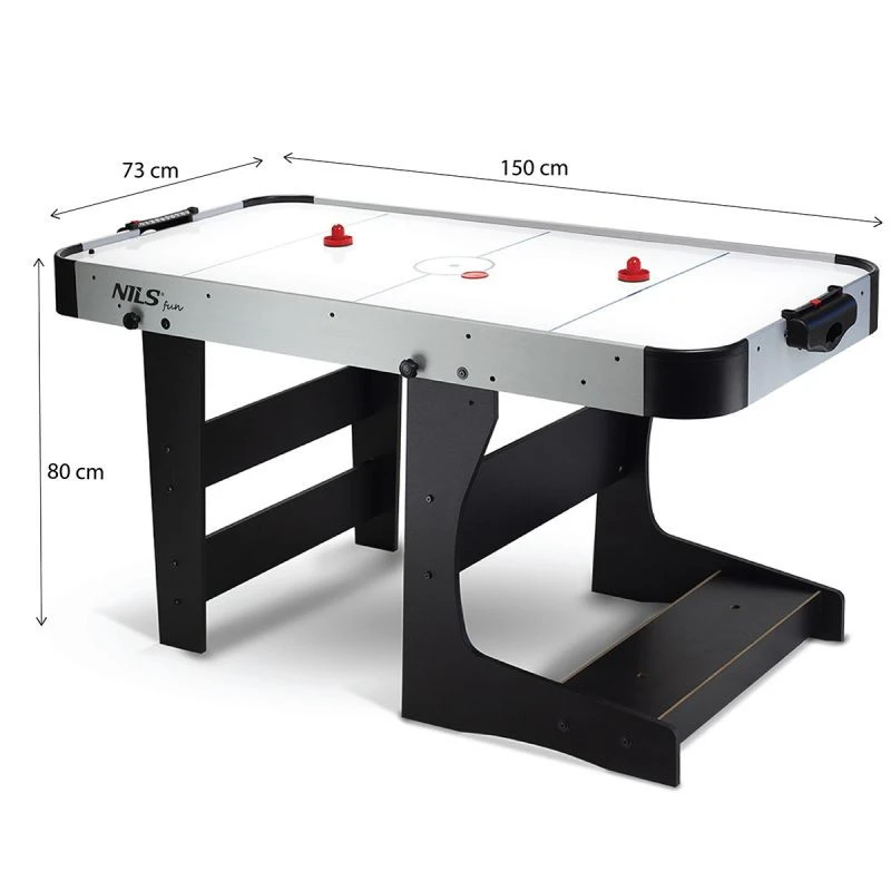 Stůl je vyroben z kvalitní MDF desky, která je odolná proti oděru, což se projevuje dlouhou životností. Hrací plocha je vybavena speciálními vzduchovými otvory, které usnadňují pohyb puku a činí hru dynamičtější. Pod stolem je instalována účinná baterie.