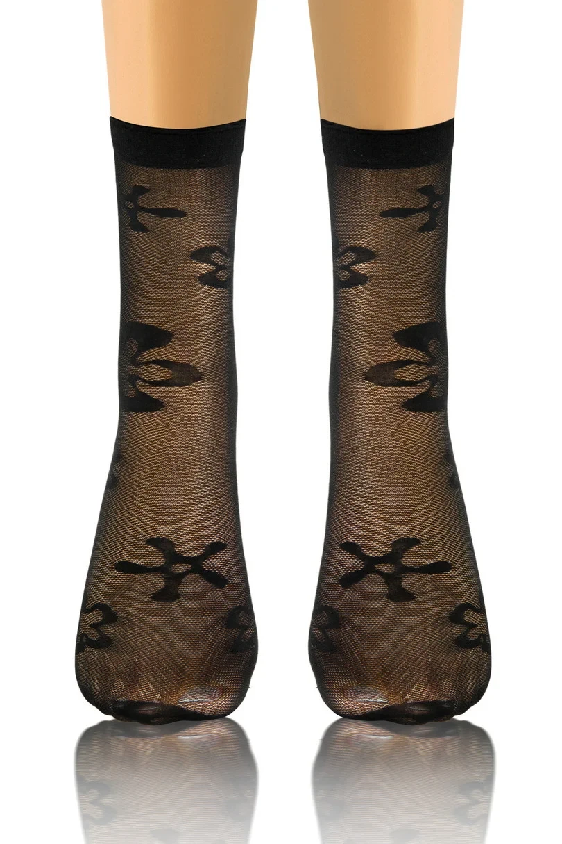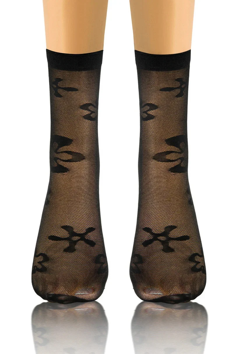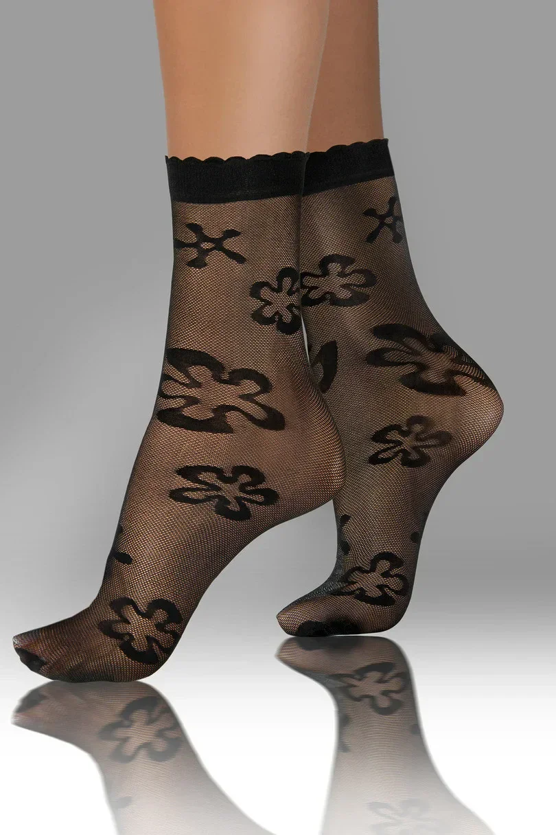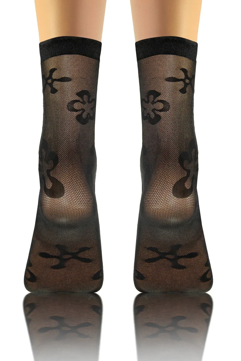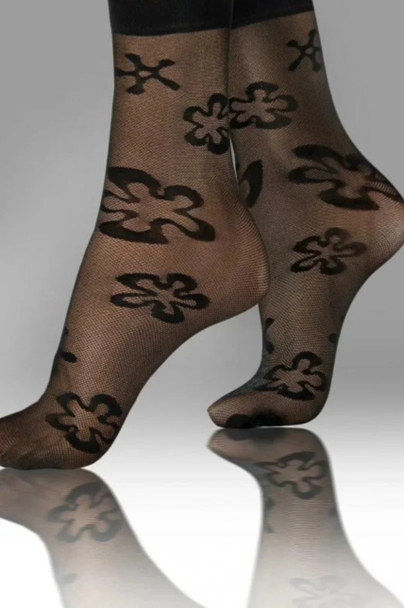 Transparentní příze zdůrazňuje lehkost a jemnost, zatímco ozdobný motiv jim dodává jedinečný charakter.Absence zesílení na špičkách zajišťuje efekt bosé nohy, což z nich činí ideální volbu pro outdoorovou obuv.Neotlačující lem zaručuje pohodlné celodenní nošení, aniž by způsoboval nepohodlí.Tyto ponožky jsou dokonalou kombinací klasiky a moderny.