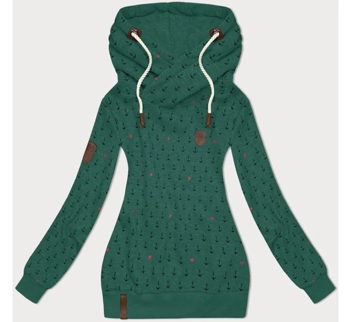 Vzorovaná dámská mikina v tyrkysové barvě (2304)