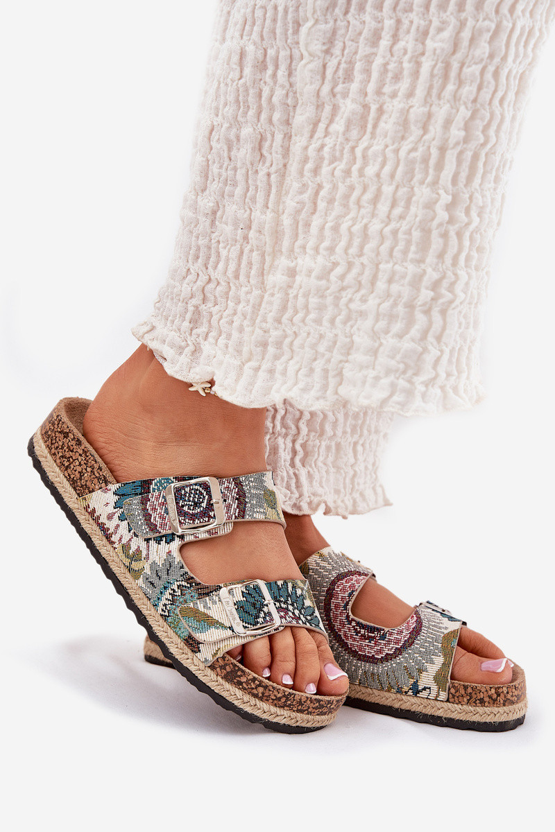 Vzorované dámské pantofle na korkové platformě s přezkami Lee Cooper LCW-25-35-3483L Multikolor