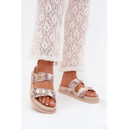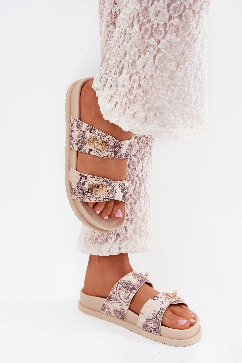 Vzorované Dámské Pantofle Na Platformě Béžové model 21703805 - Boto