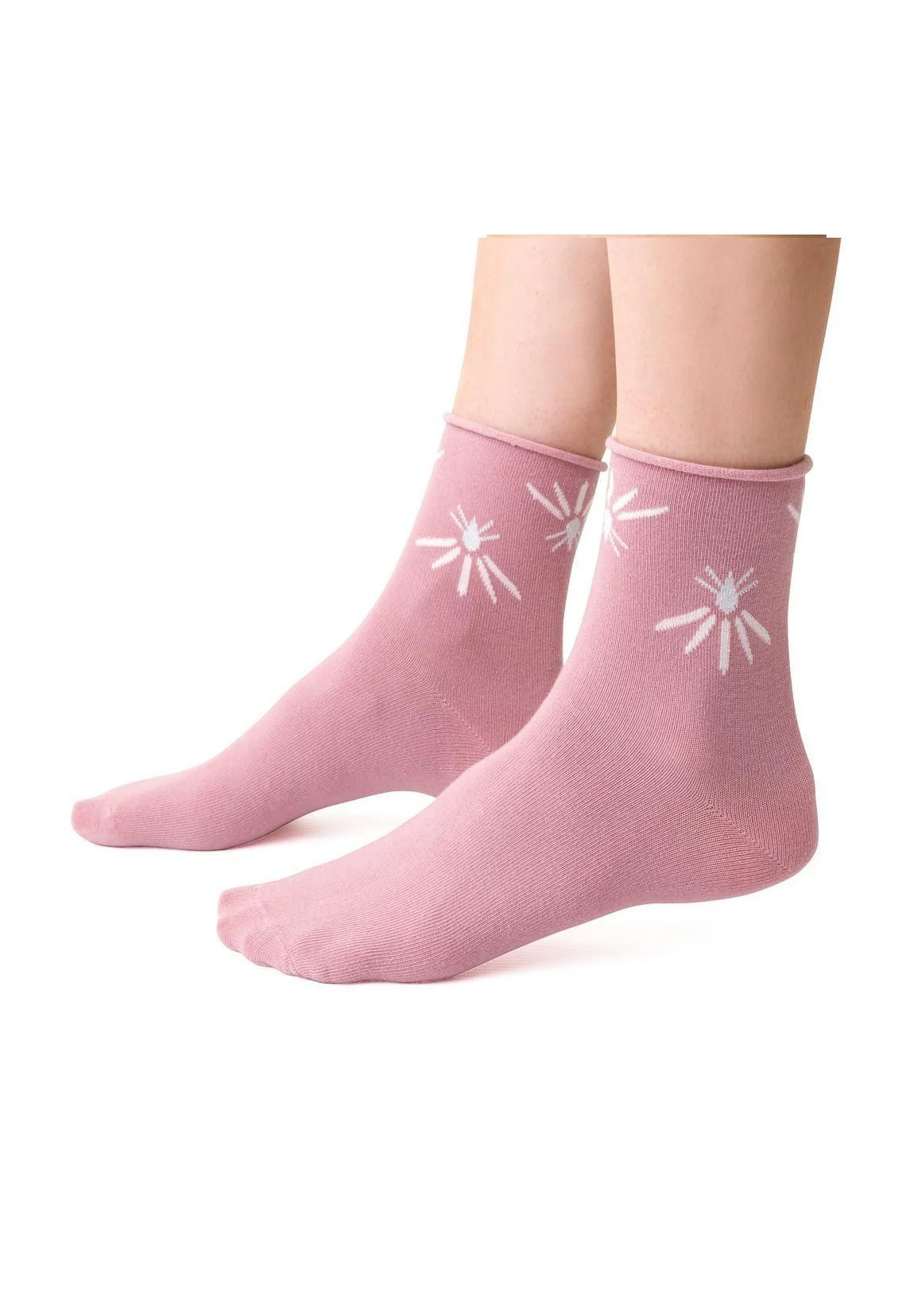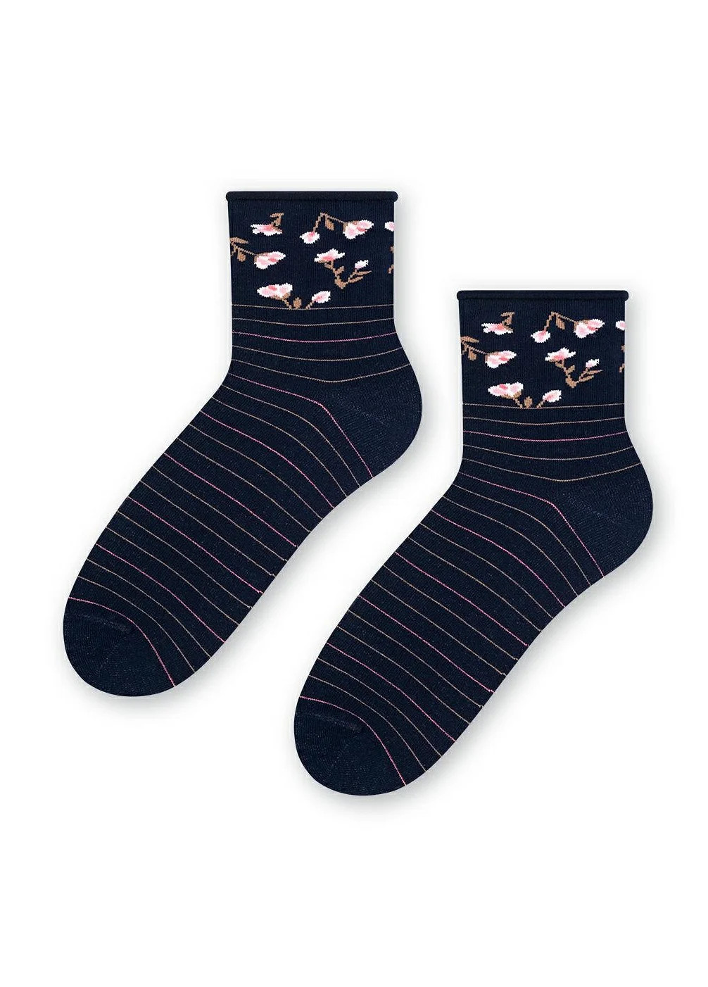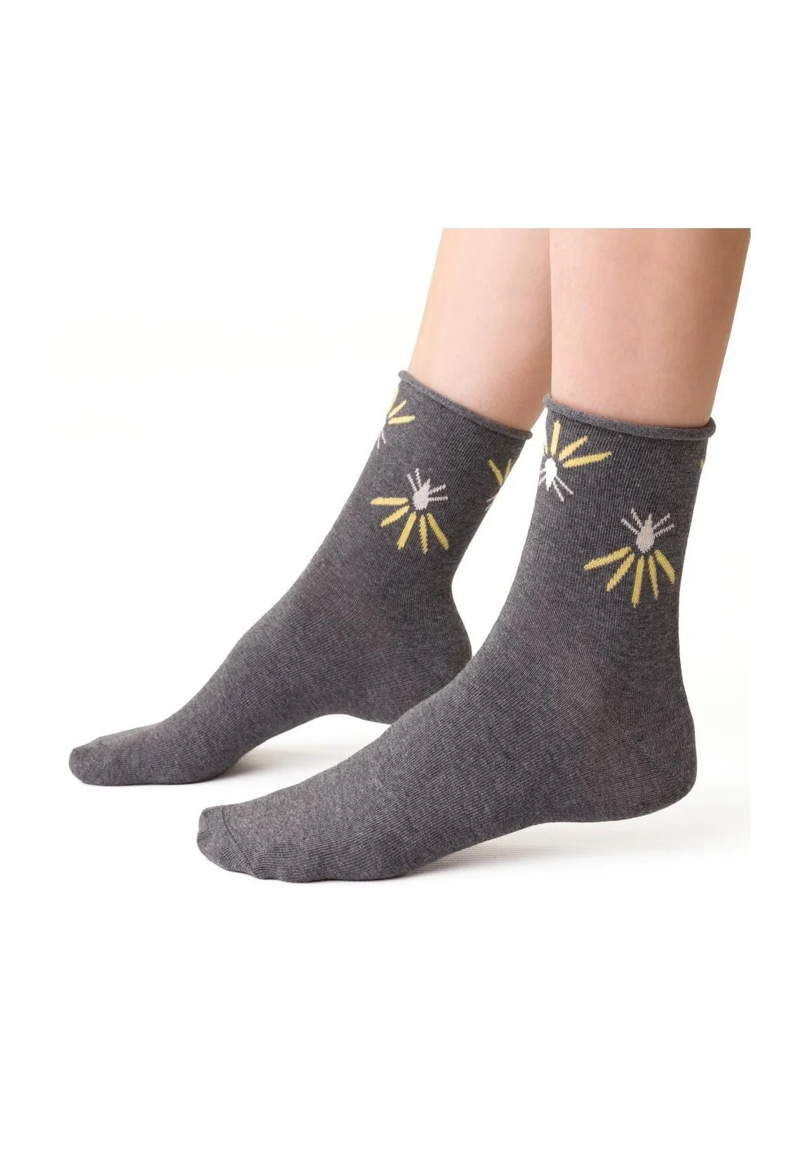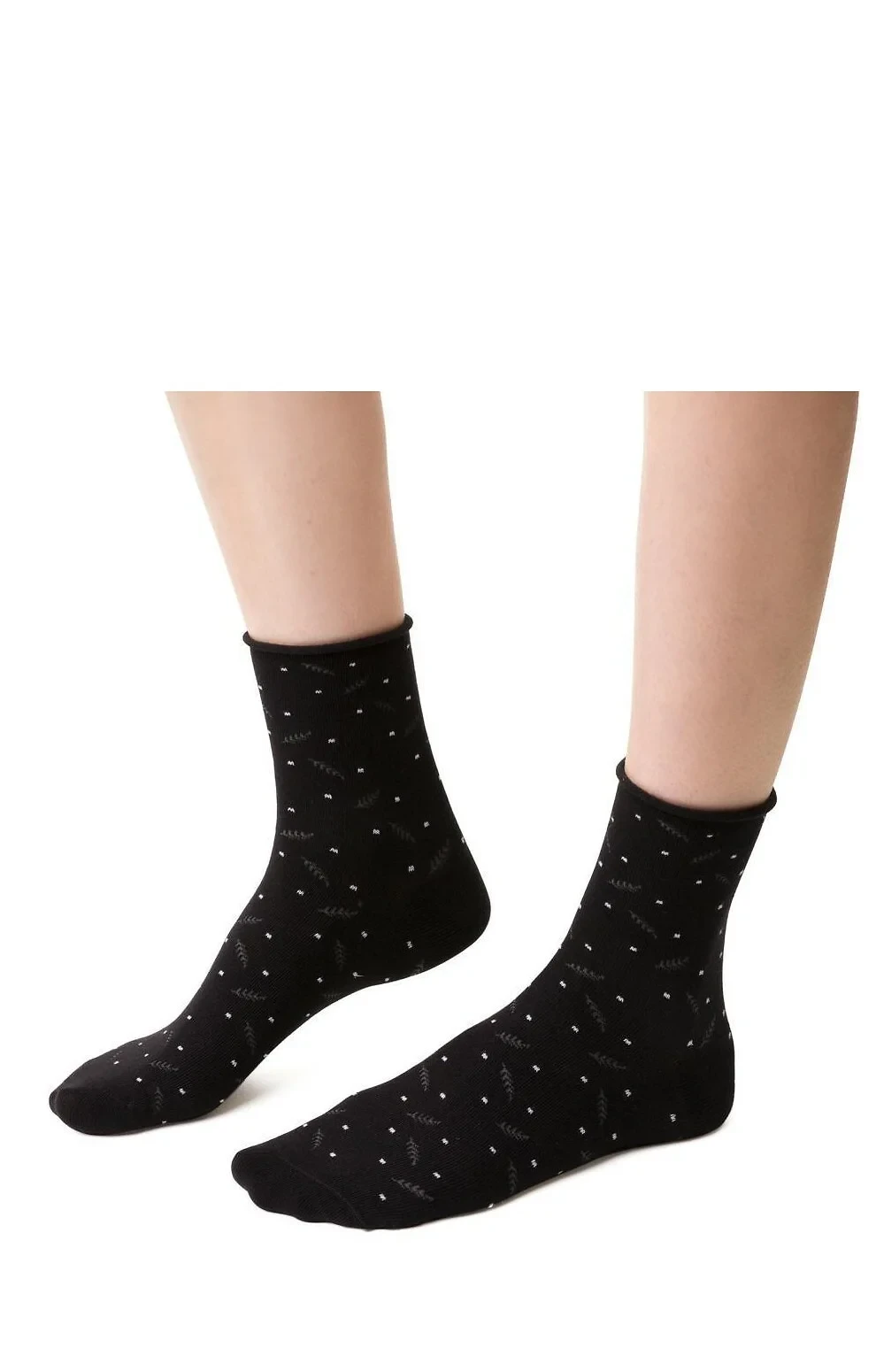 Model má ploché švy a ozdobný lem, který při nošení netlačí. Ponožky jsou pohodlné a komfortní.