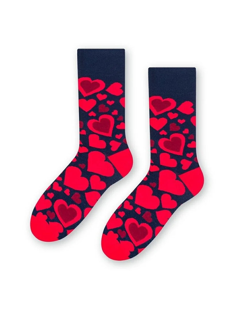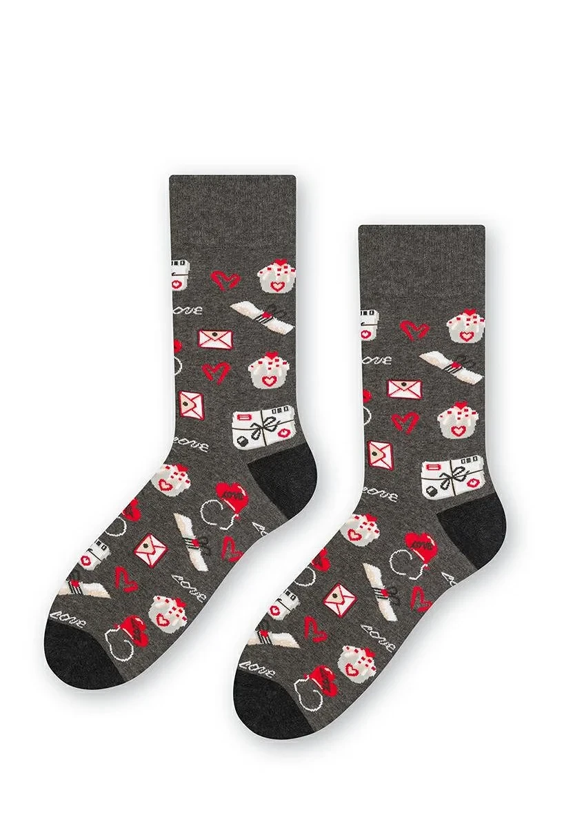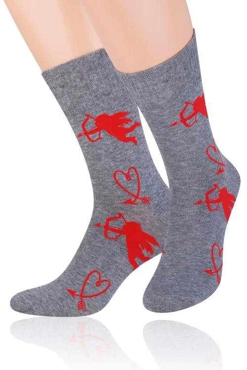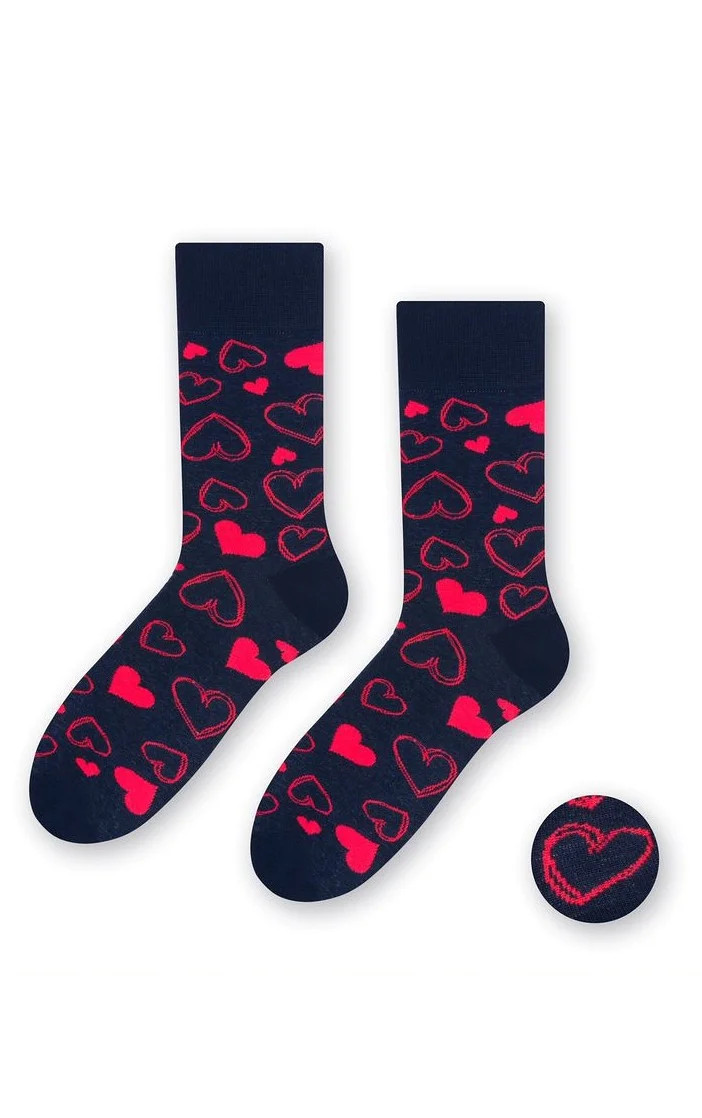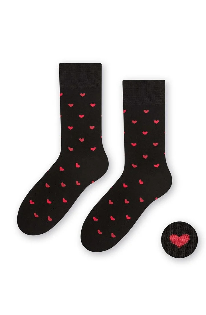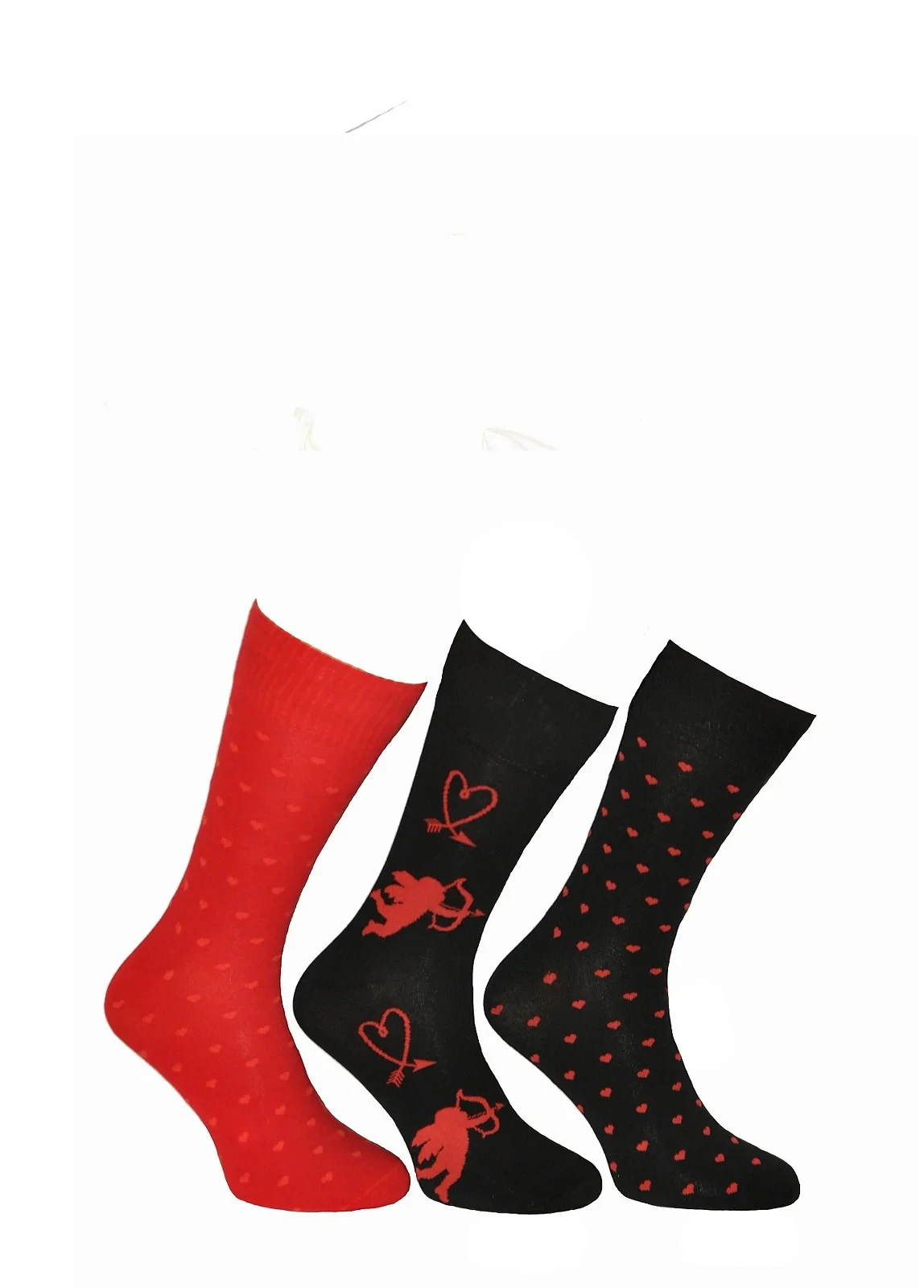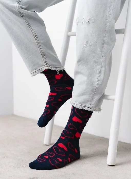 Bavlněné pánské ponožky, které jsou ozdobené vzory s valentýnskou tematikou.