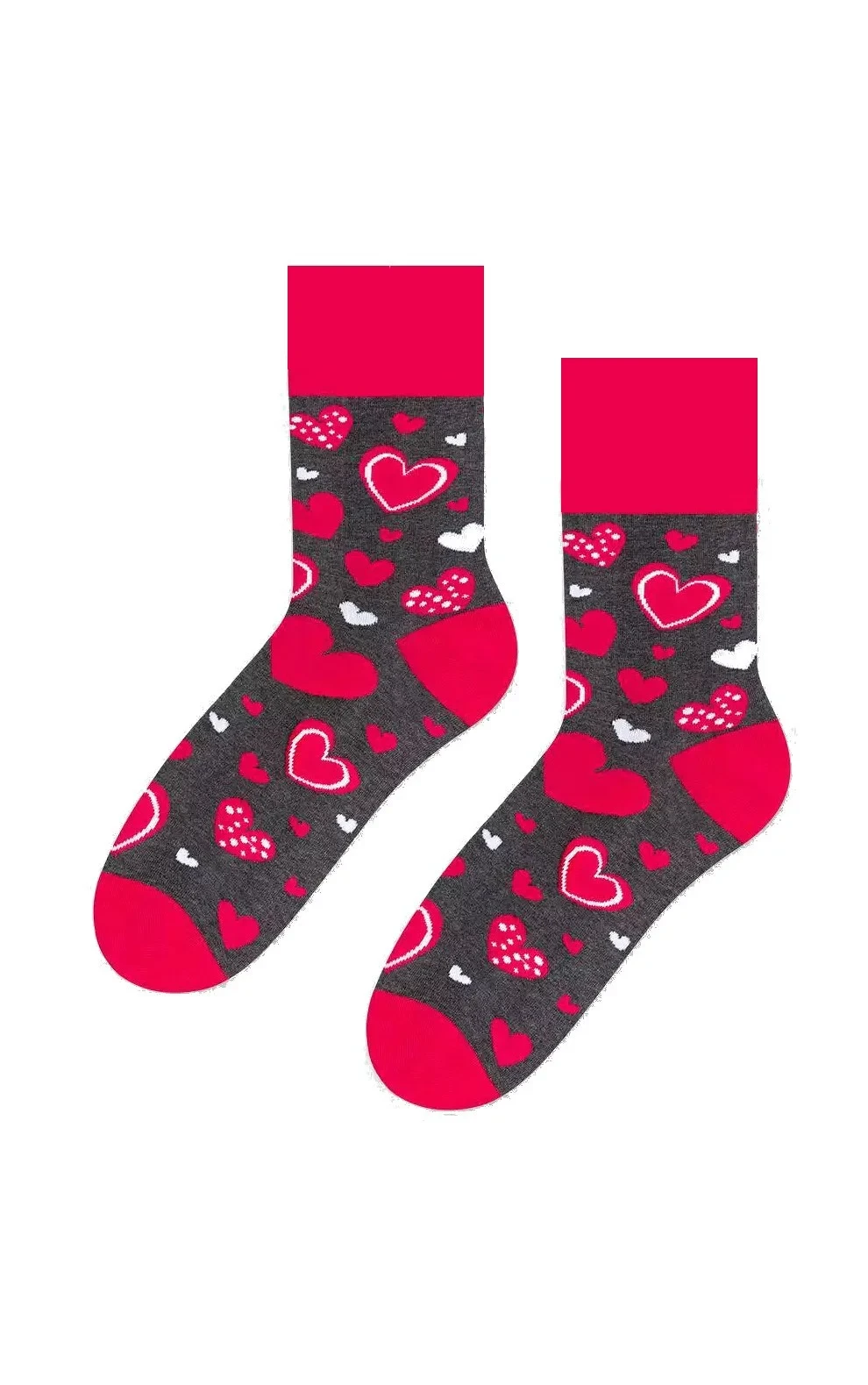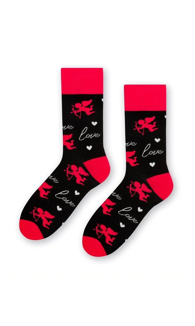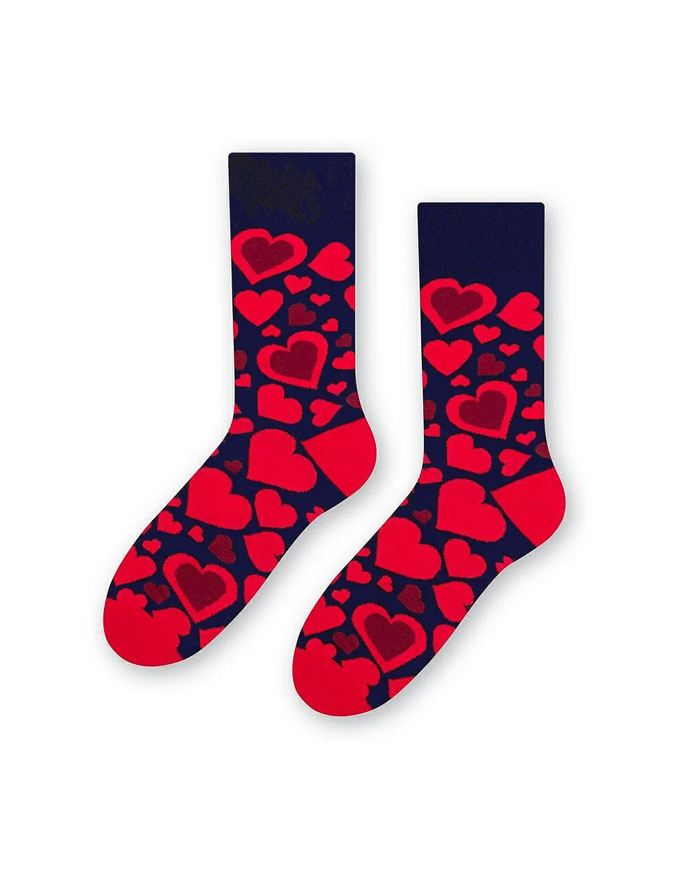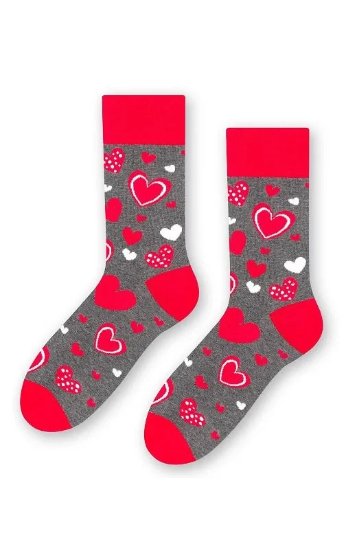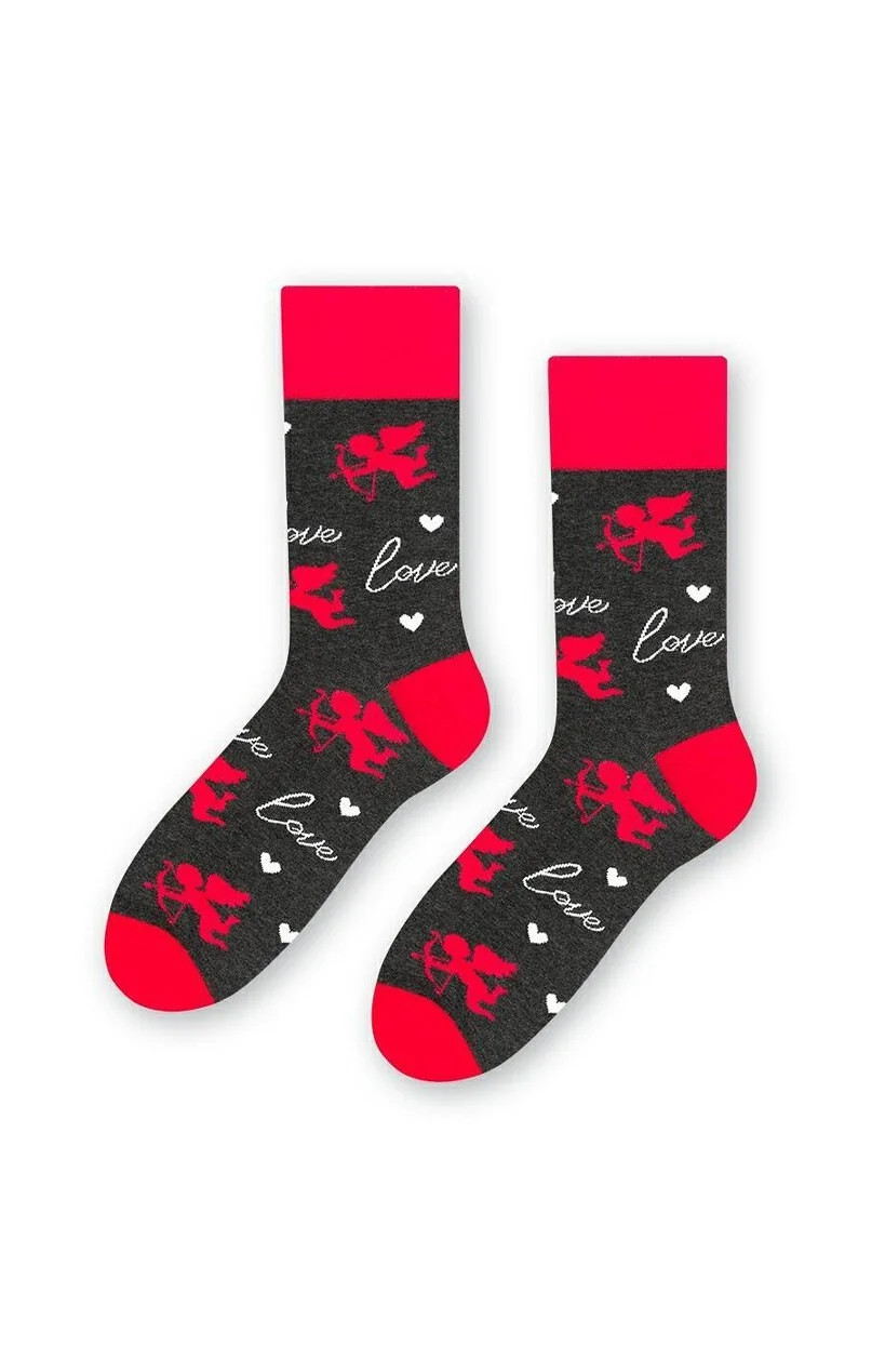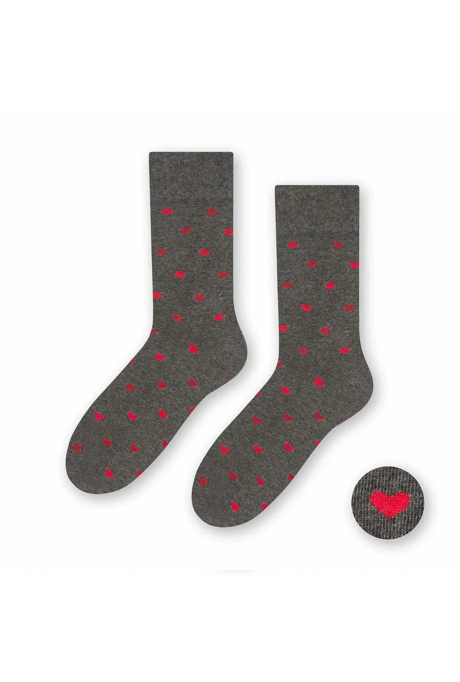 Bavlněné pánské ponožky, které jsou ozdobené vzory s valentýnskou tematikou.