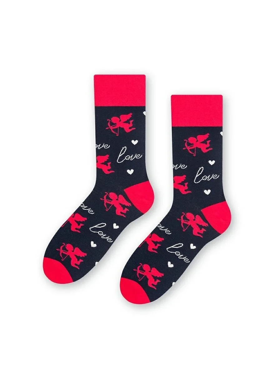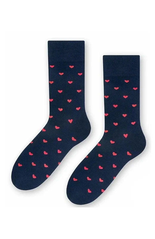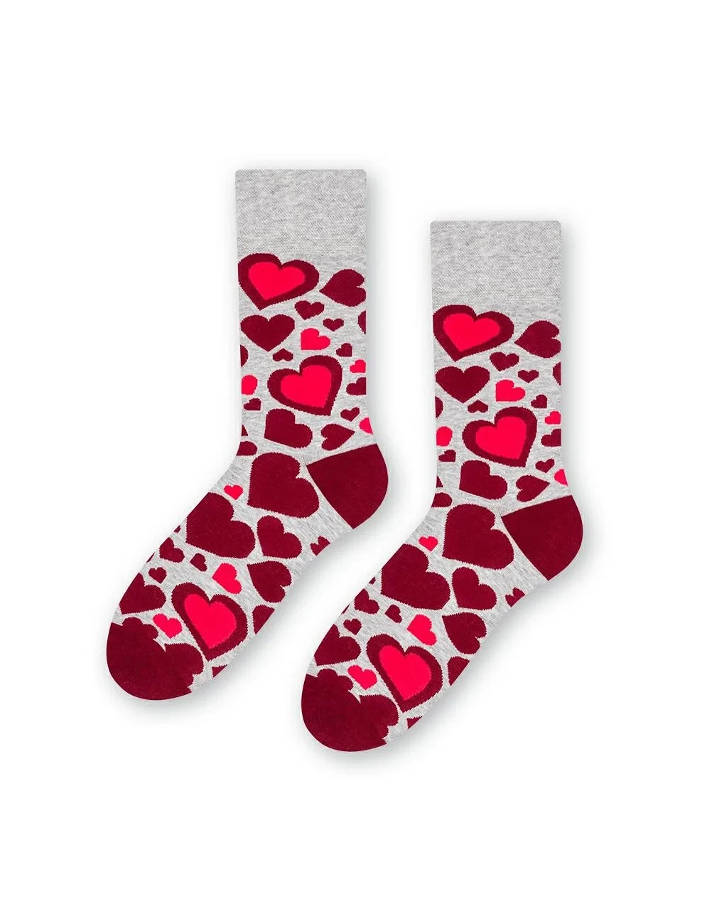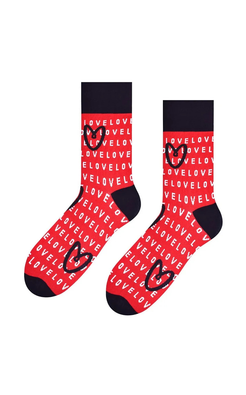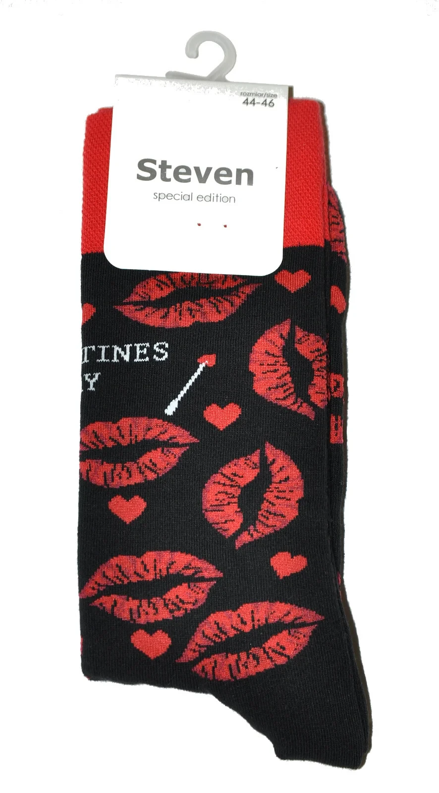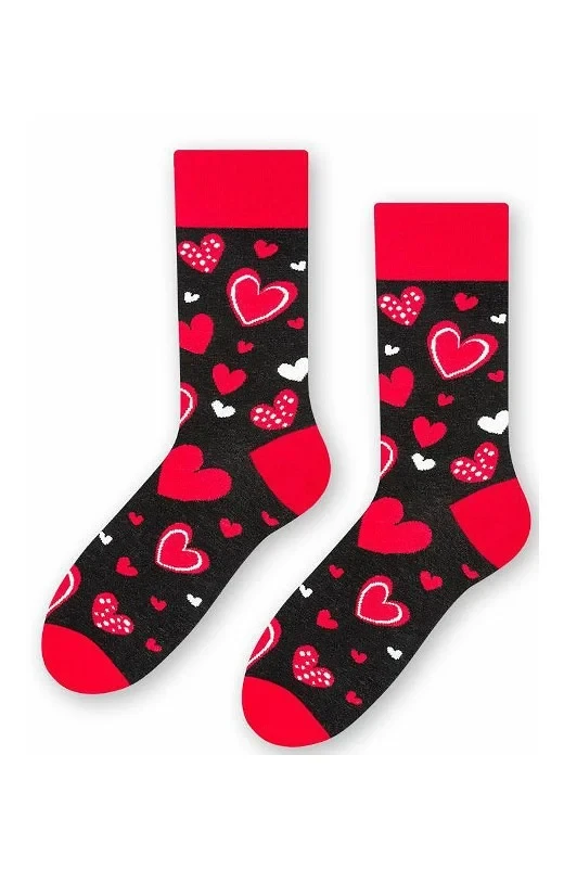 Bavlněné pánské ponožky, které jsou ozdobené vzory s valentýnskou tematikou.