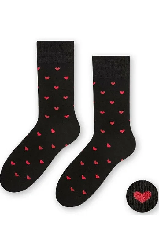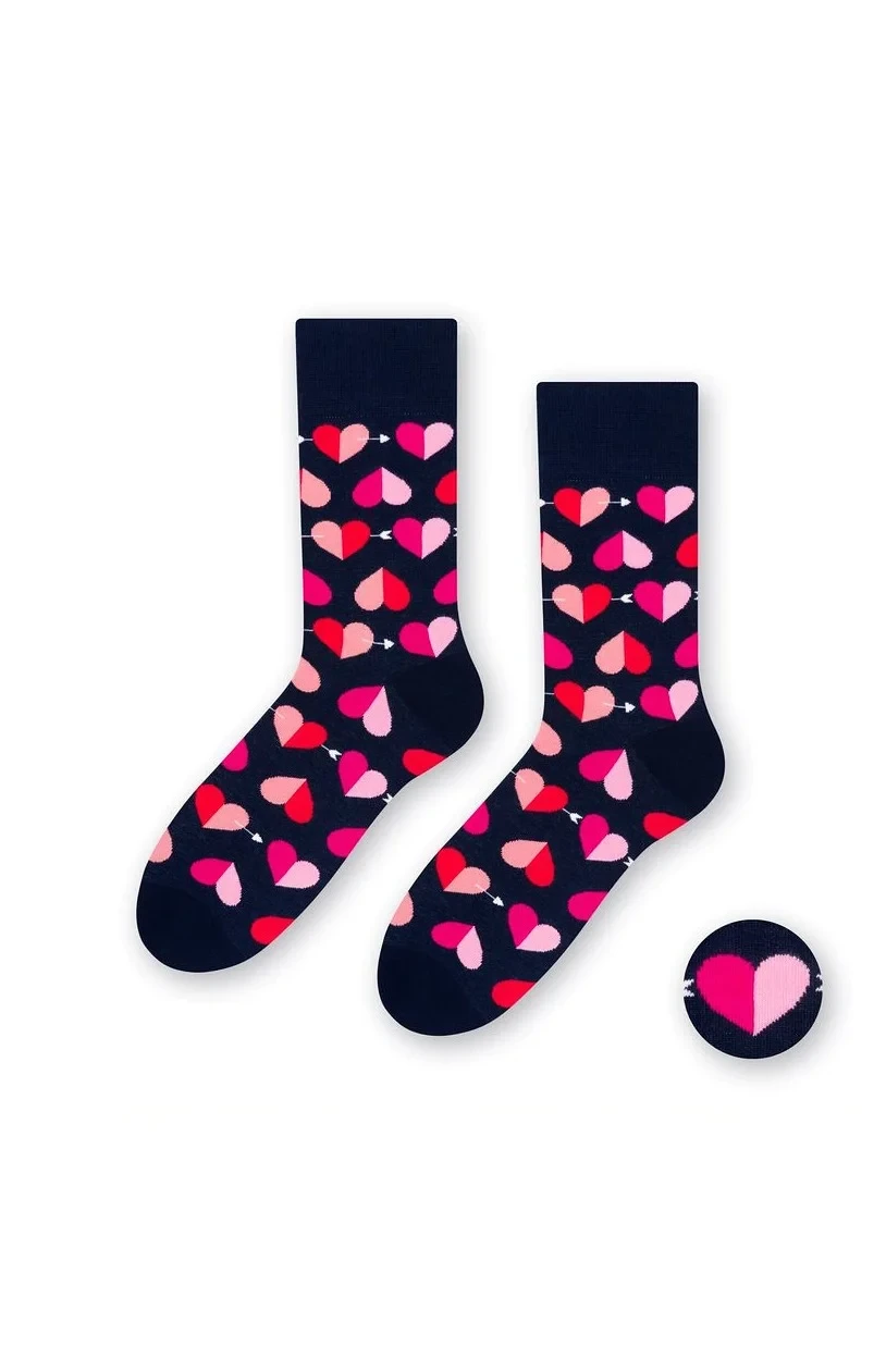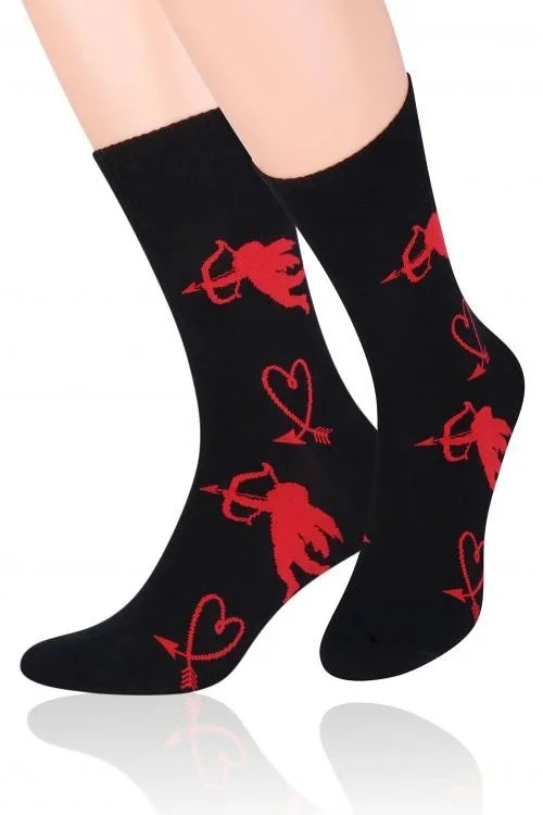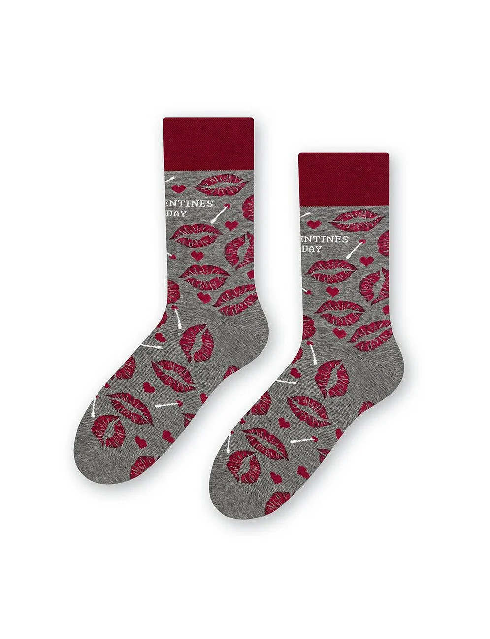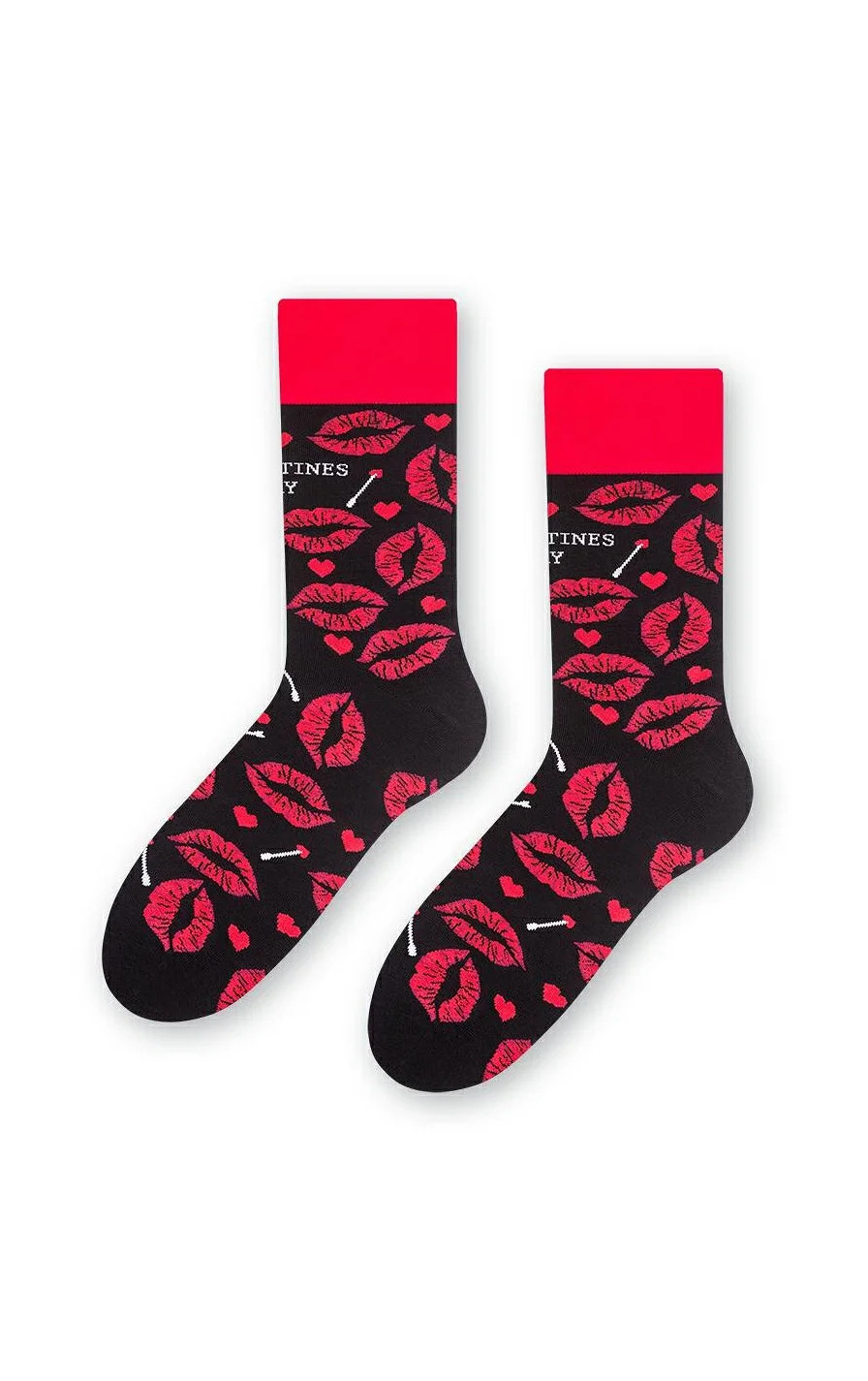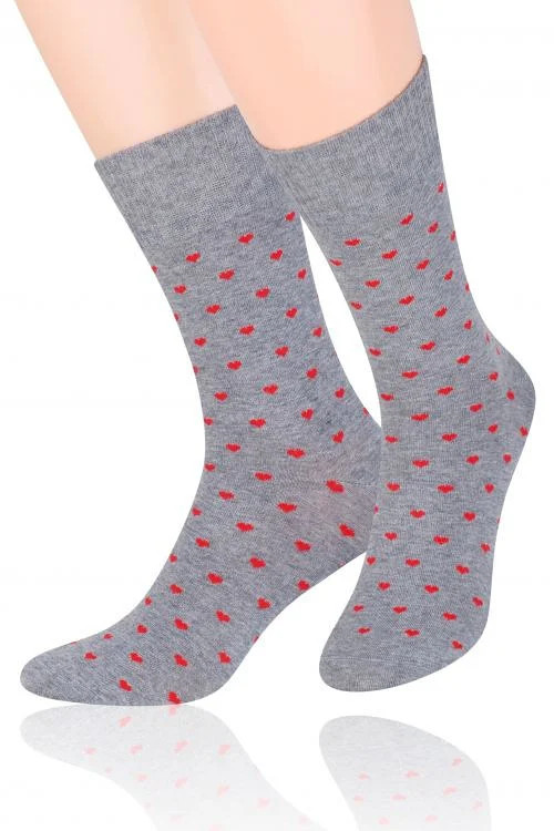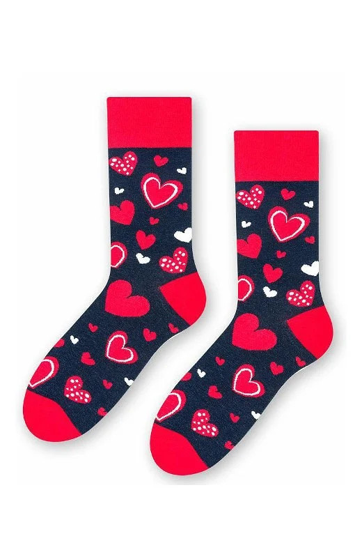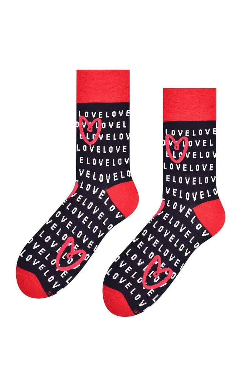 Bavlněné pánské ponožky, které jsou ozdobené vzory s valentýnskou tematikou.