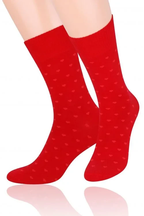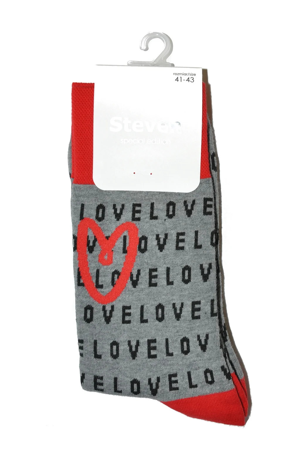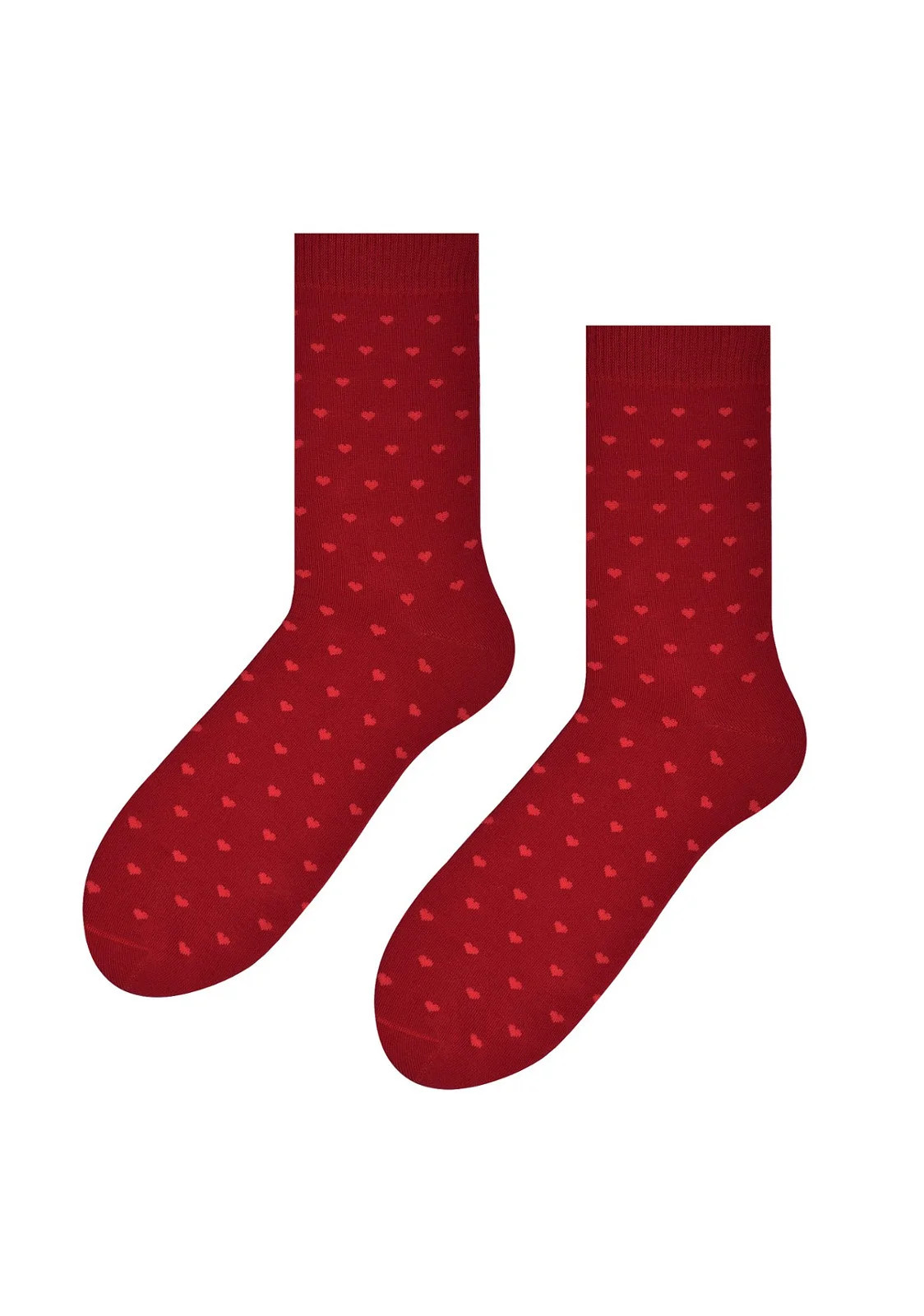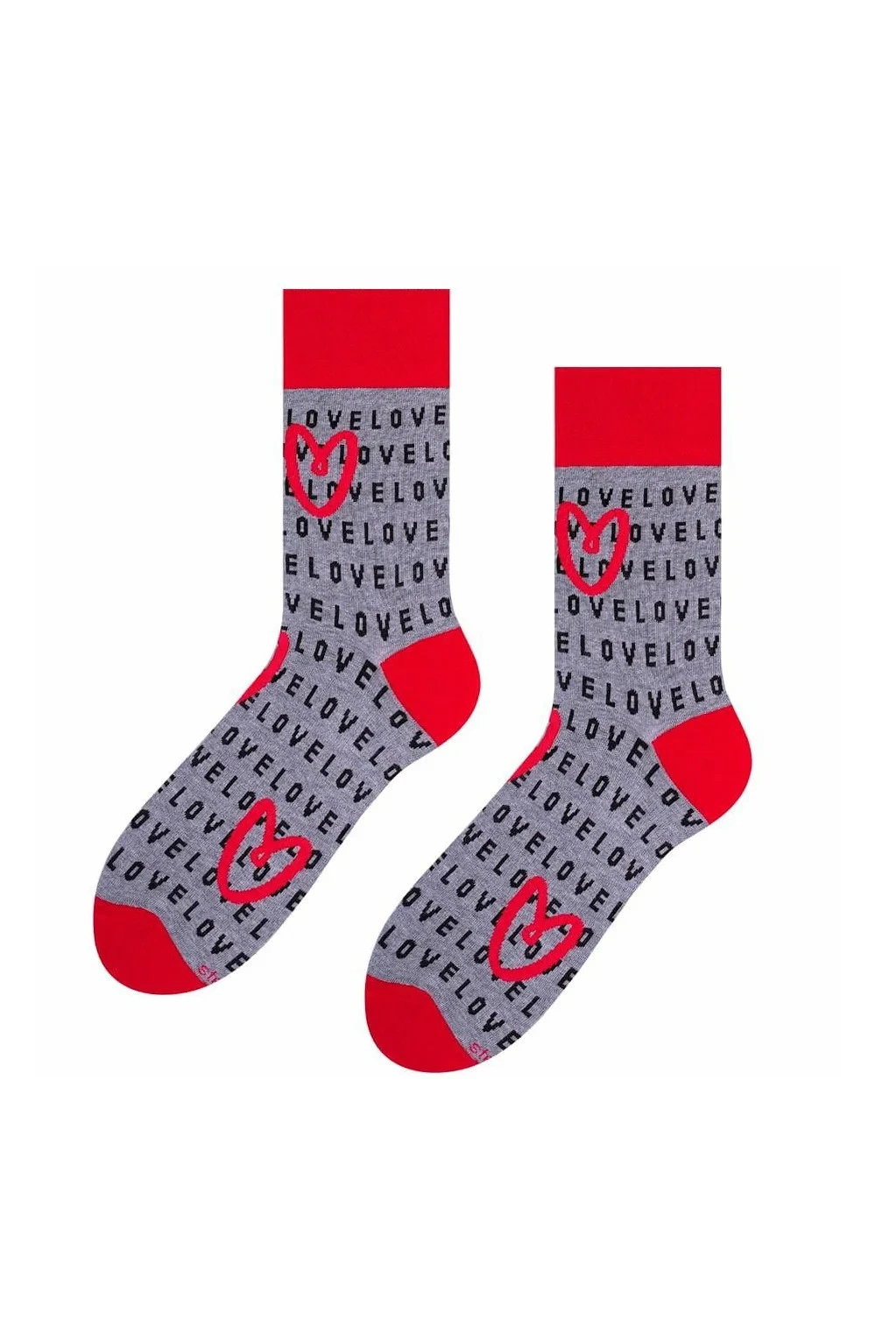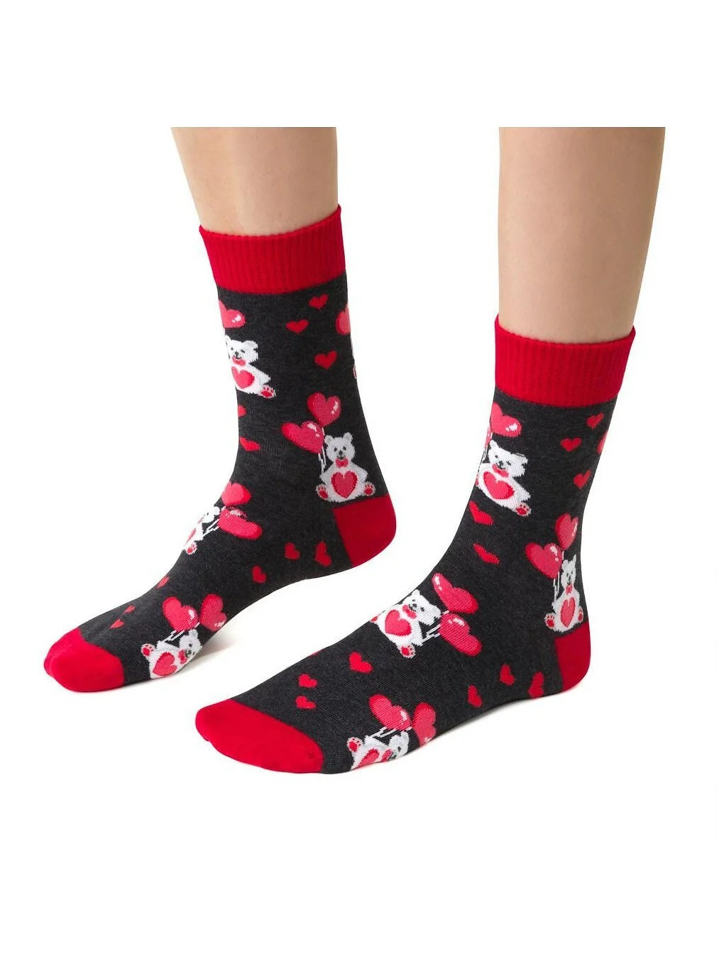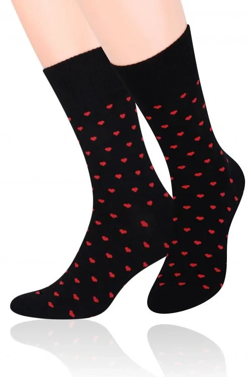 Bavlněné pánské ponožky, které jsou ozdobené vzory s valentýnskou tematikou.