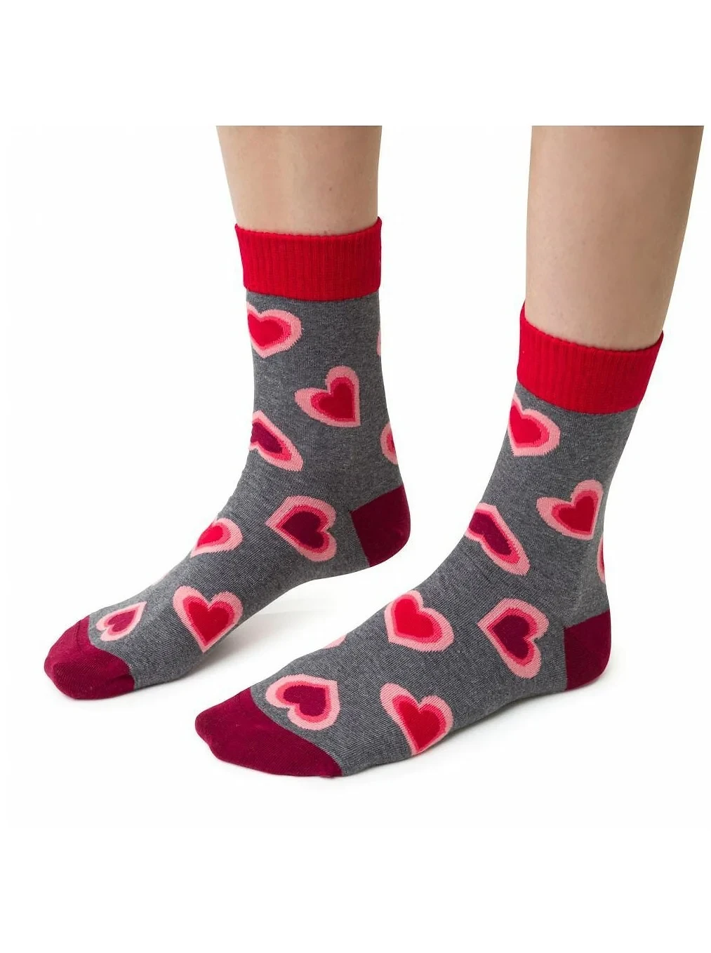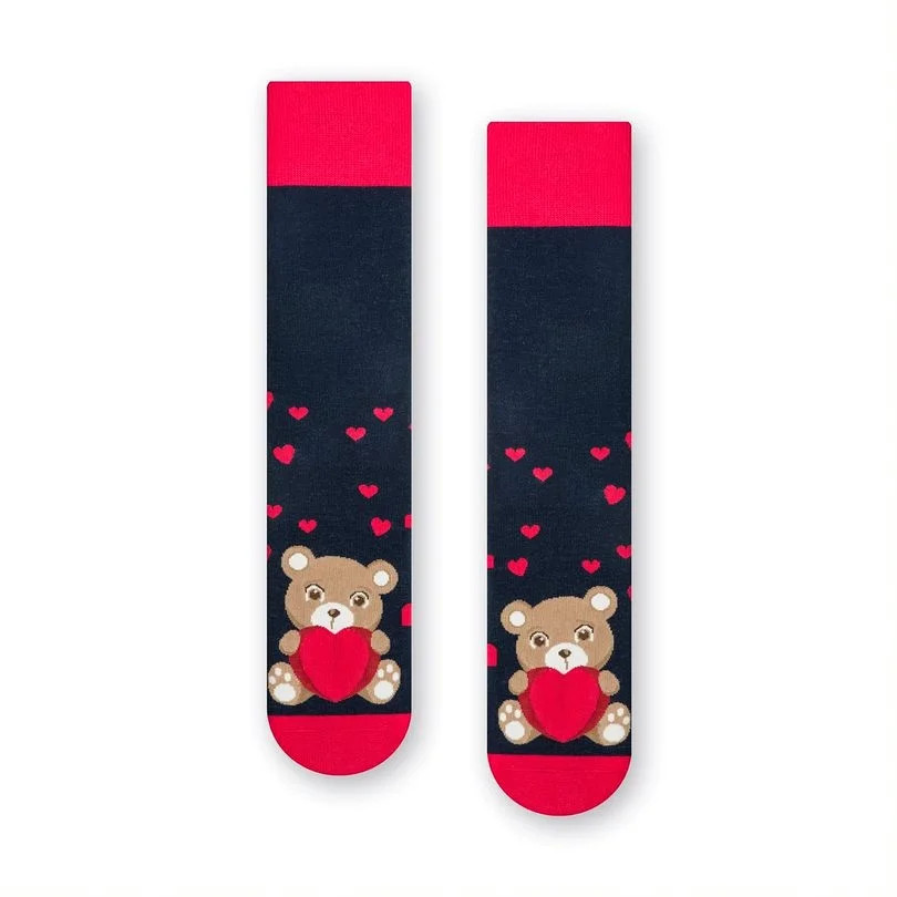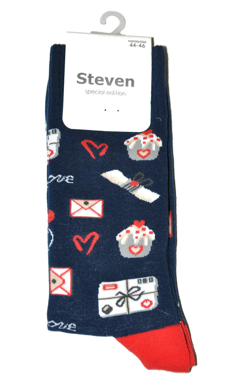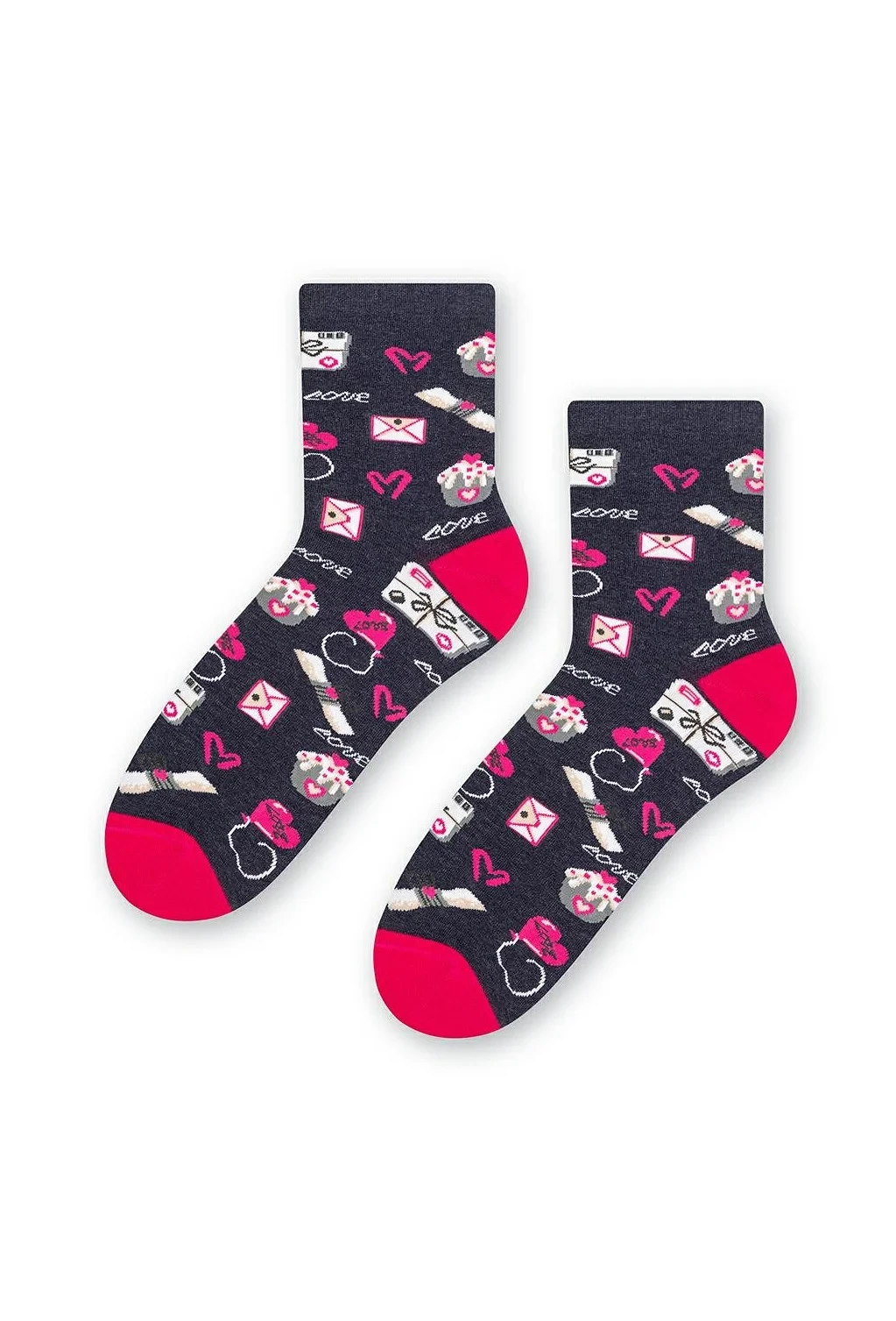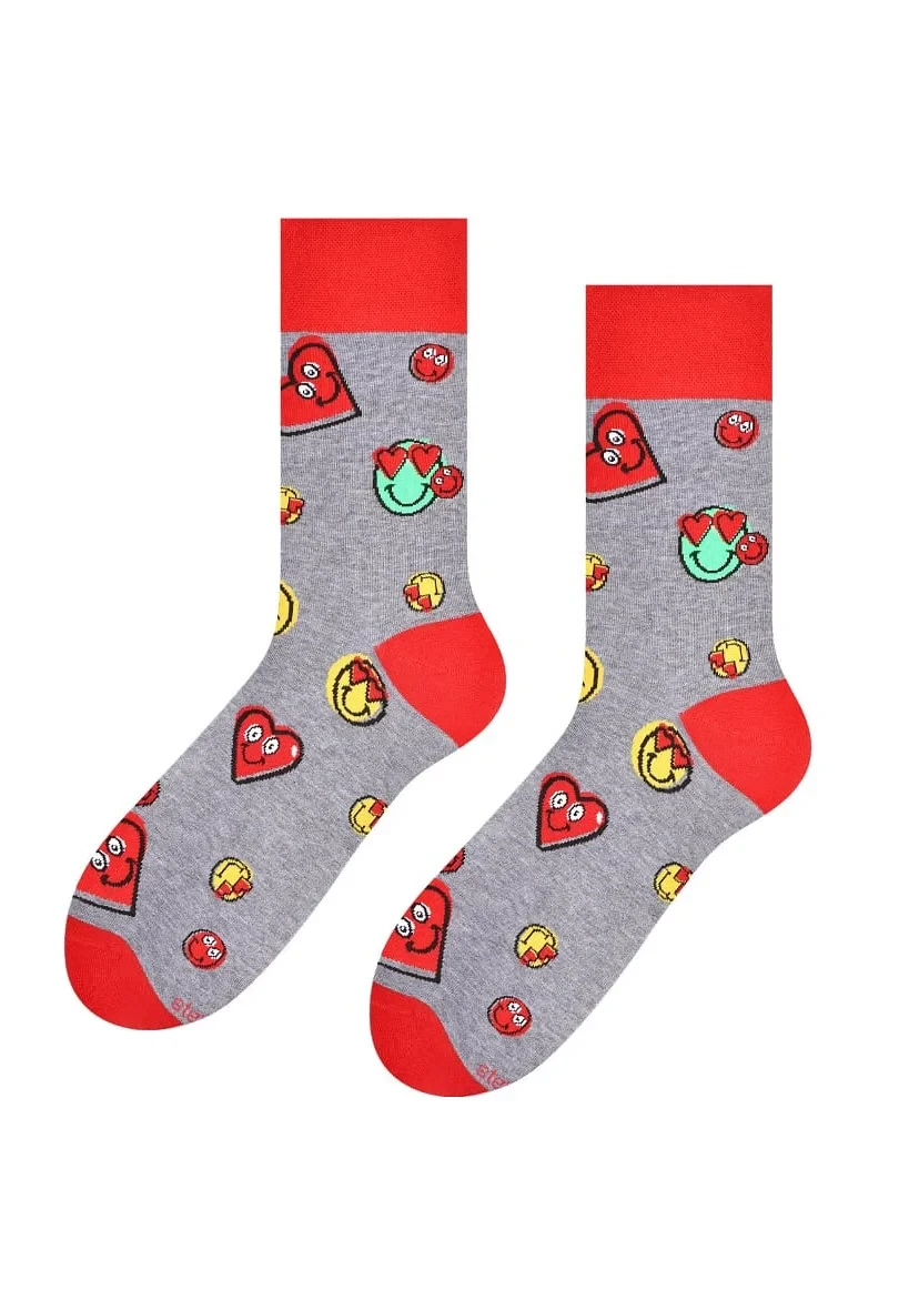 Bavlněné pánské ponožky, které jsou ozdobené vzory s valentýnskou tematikou.