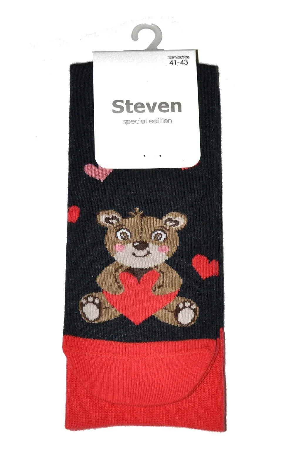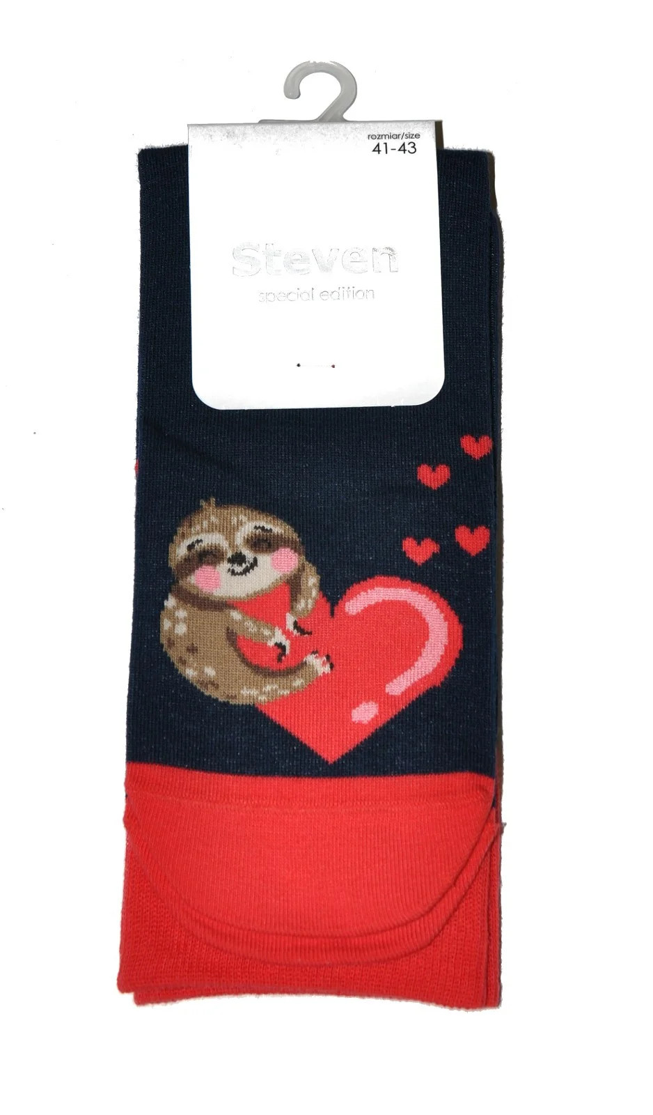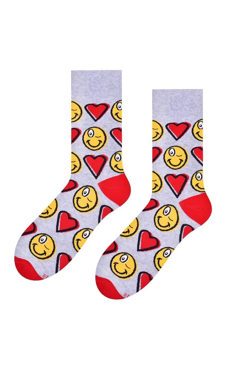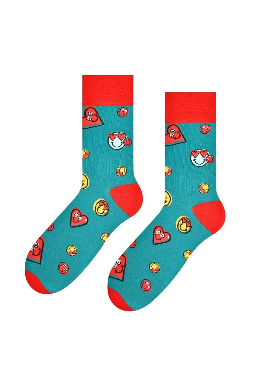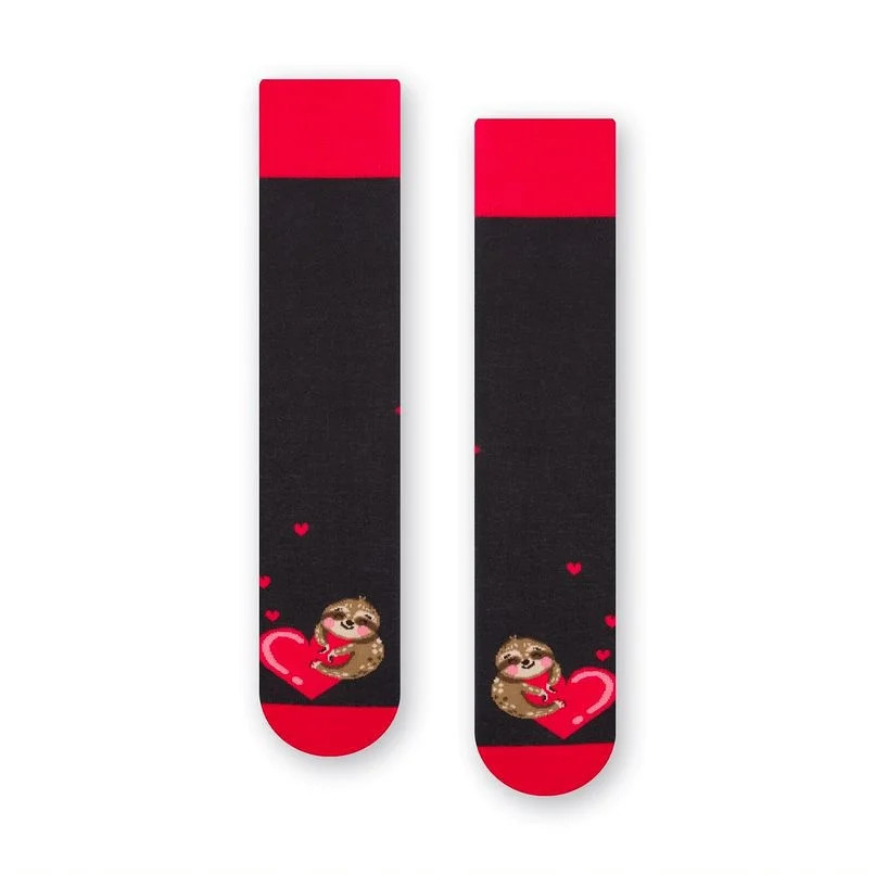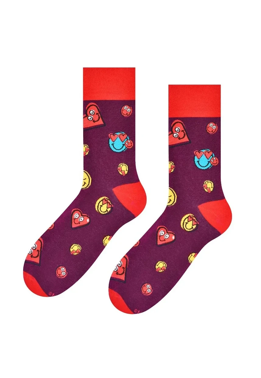 Bavlněné pánské ponožky, které jsou ozdobené vzory s valentýnskou tematikou.