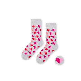 Bavlněné pánské ponožky, které jsou ozdobené vzory s valentýnskou tematikou.