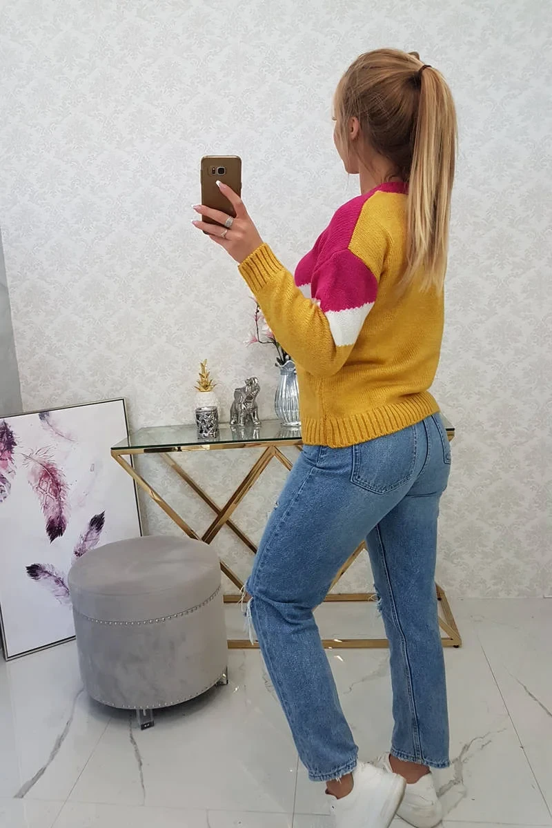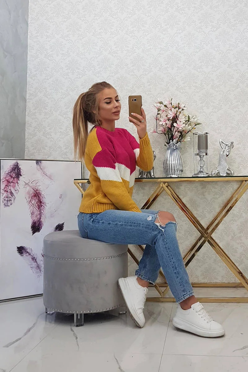 Představujeme vám módní svetr. Svetr má geometrické vzory. Svetr nošený přes hlavu. Klasický střih ideální pro jakýkoli zimní vzhled. Hřejivé a příjemné na dotek. Svetr je vyroben z vysoce kvalitního materiálu. Velikost je univerzální a vyhovuje dámám ve velikostech M, L, XL.