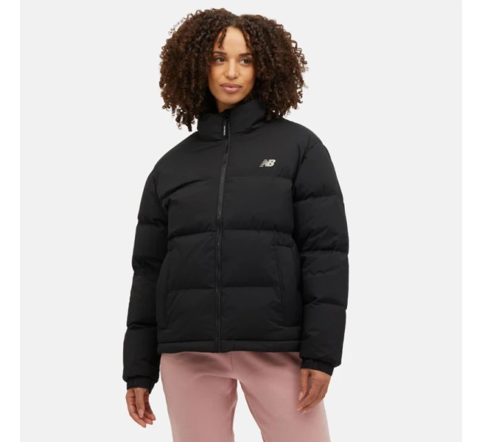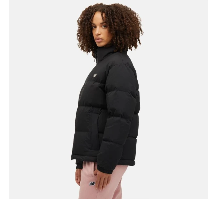 - Dámská bunda s vysokým límcem a malým logem New Balance na hrudi.