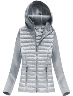 Šedá dámská prošívaná bunda z různých prošívaných materiálů (18019)