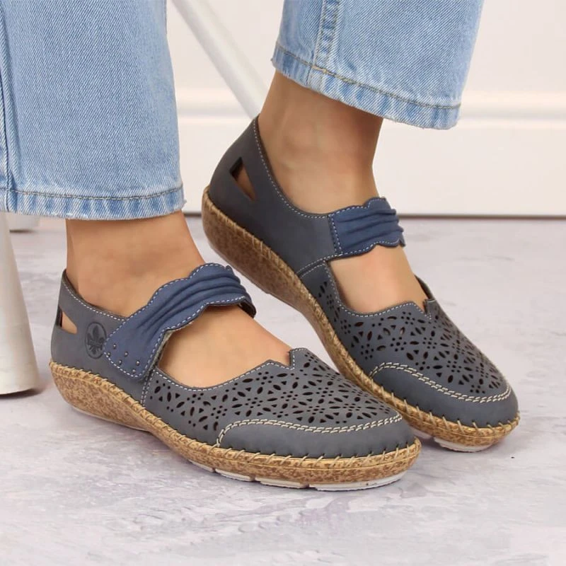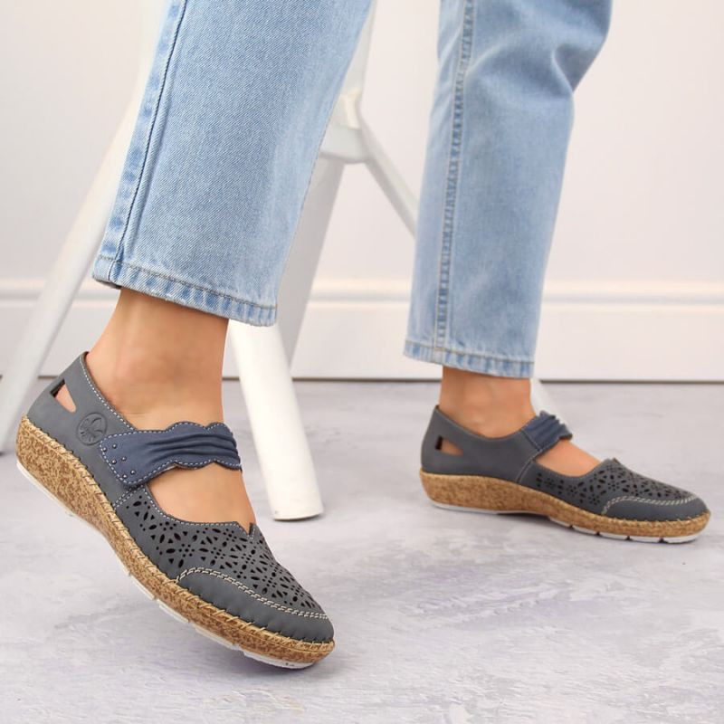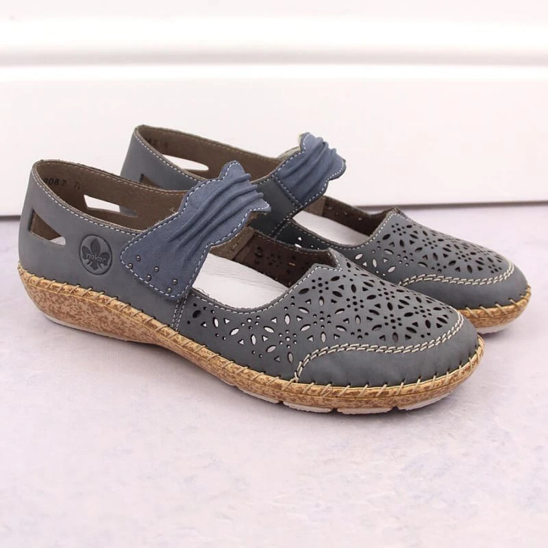Přidání recenze k W model 19554666 modré kožené polobotky s ažurovým vzorem - Rieker