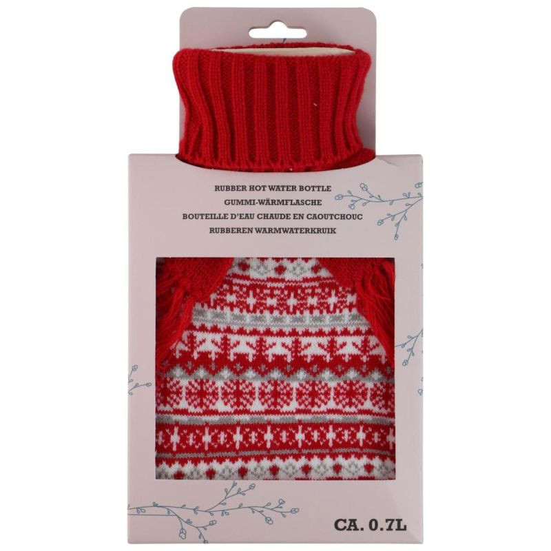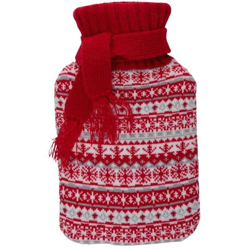 Postaw na termofor Alpina 0,7 L w pokrowcu NORDIC – kompaktowy, bezpieczny i niezwykle stylowy sposób na domowe ciepło. Jego miękki dzianinowy pokrowiec w świąteczny wzór i uroczy szalik wokół szyjki wprowadzą przytulny, skandynawski klimat do Twojego domu.