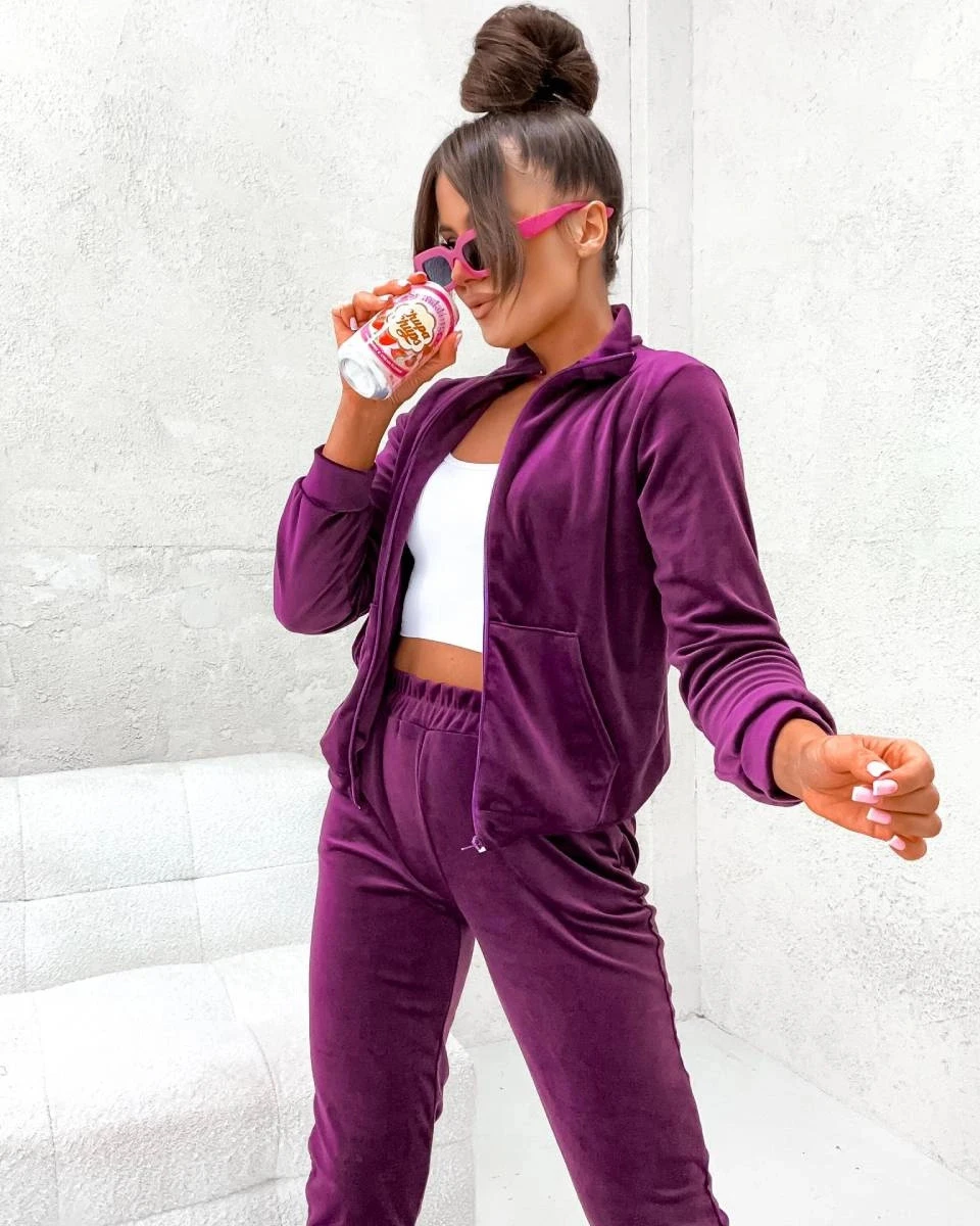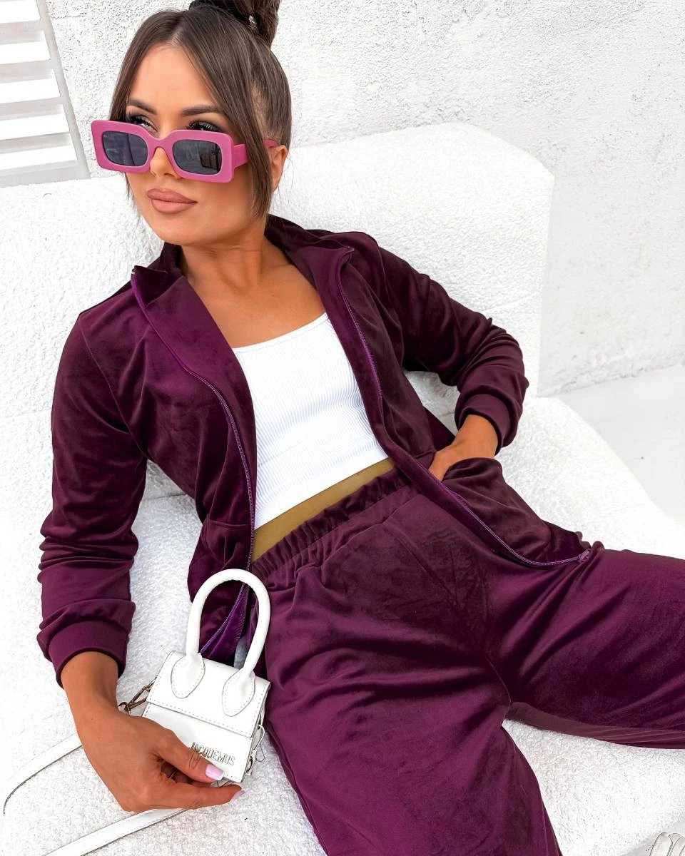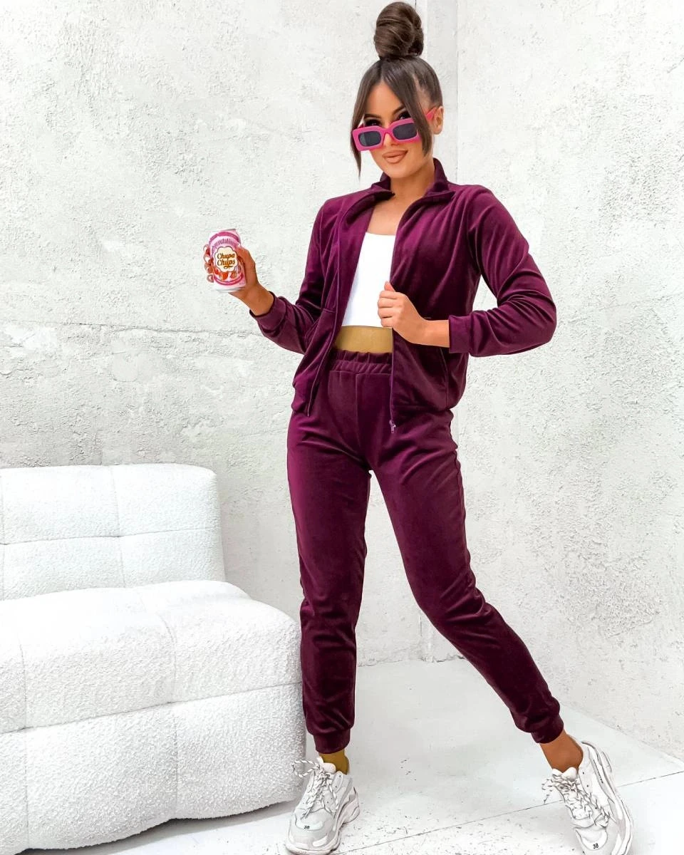 Welurowy komplet z rozpinaną bluzą bordowy (771)