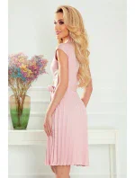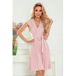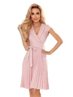 WENDY - Dámské plisované šaty v pudrově růžové barvě s přeloženým obálkovým výstřihem 385-1