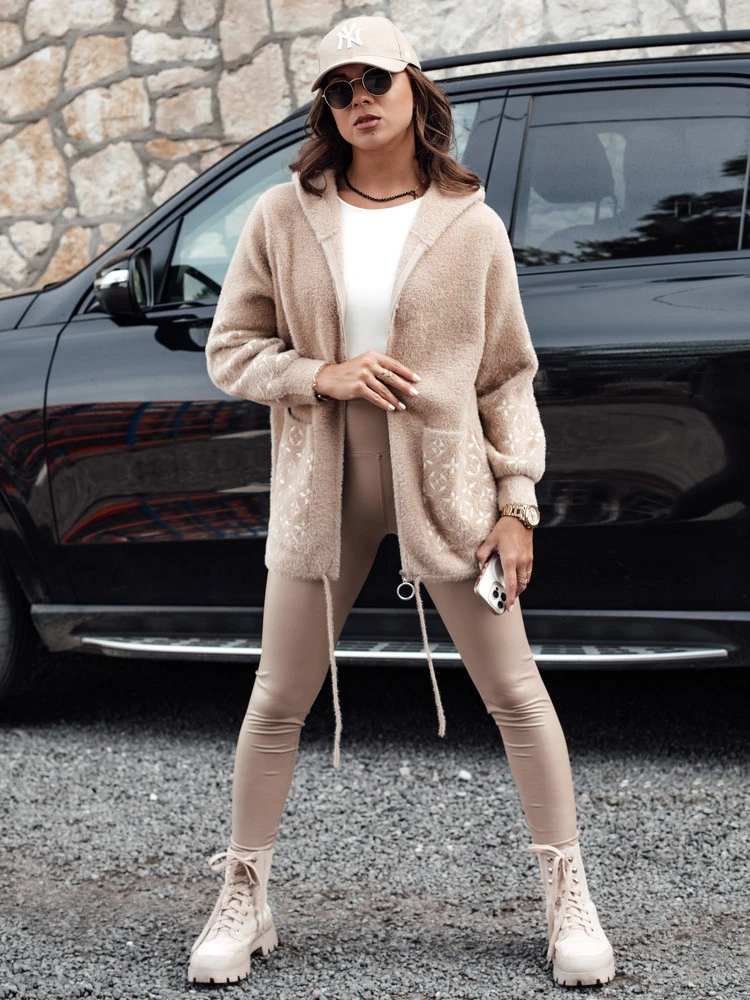 WINONA dámská bunda s kapucí z alpaky tmavě béžová FashionStreet NY0680