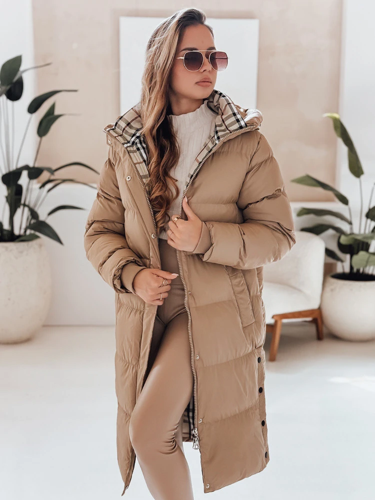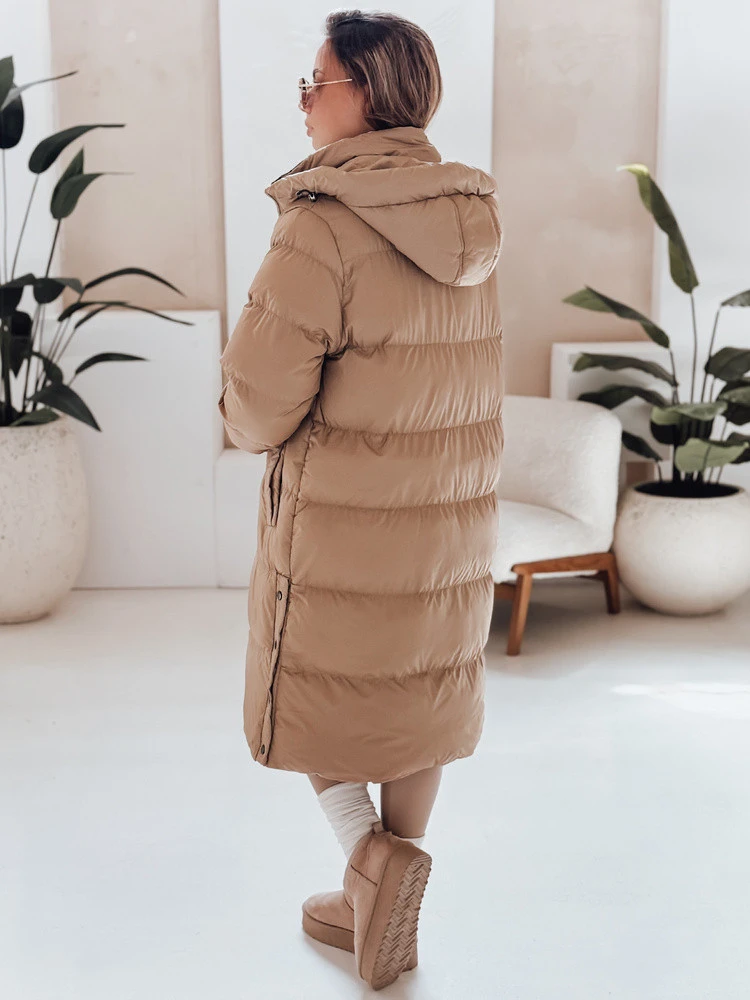 WINTERMISS dámská zimní dlouhá prošívaná bunda s kapucí tmavě béžová FashionStreet TY4966
