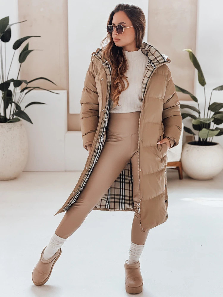 Přidání recenze k WINTERMISS dámská zimní dlouhá prošívaná bunda s kapucí tmavě béžová FashionStreet TY4966
