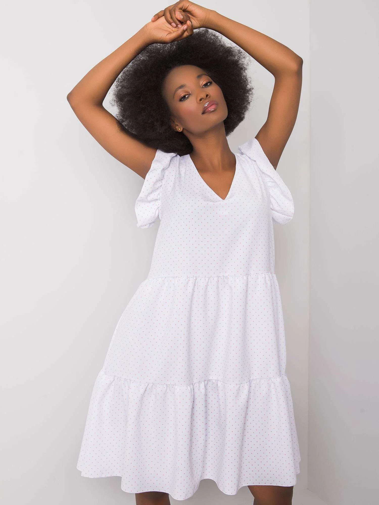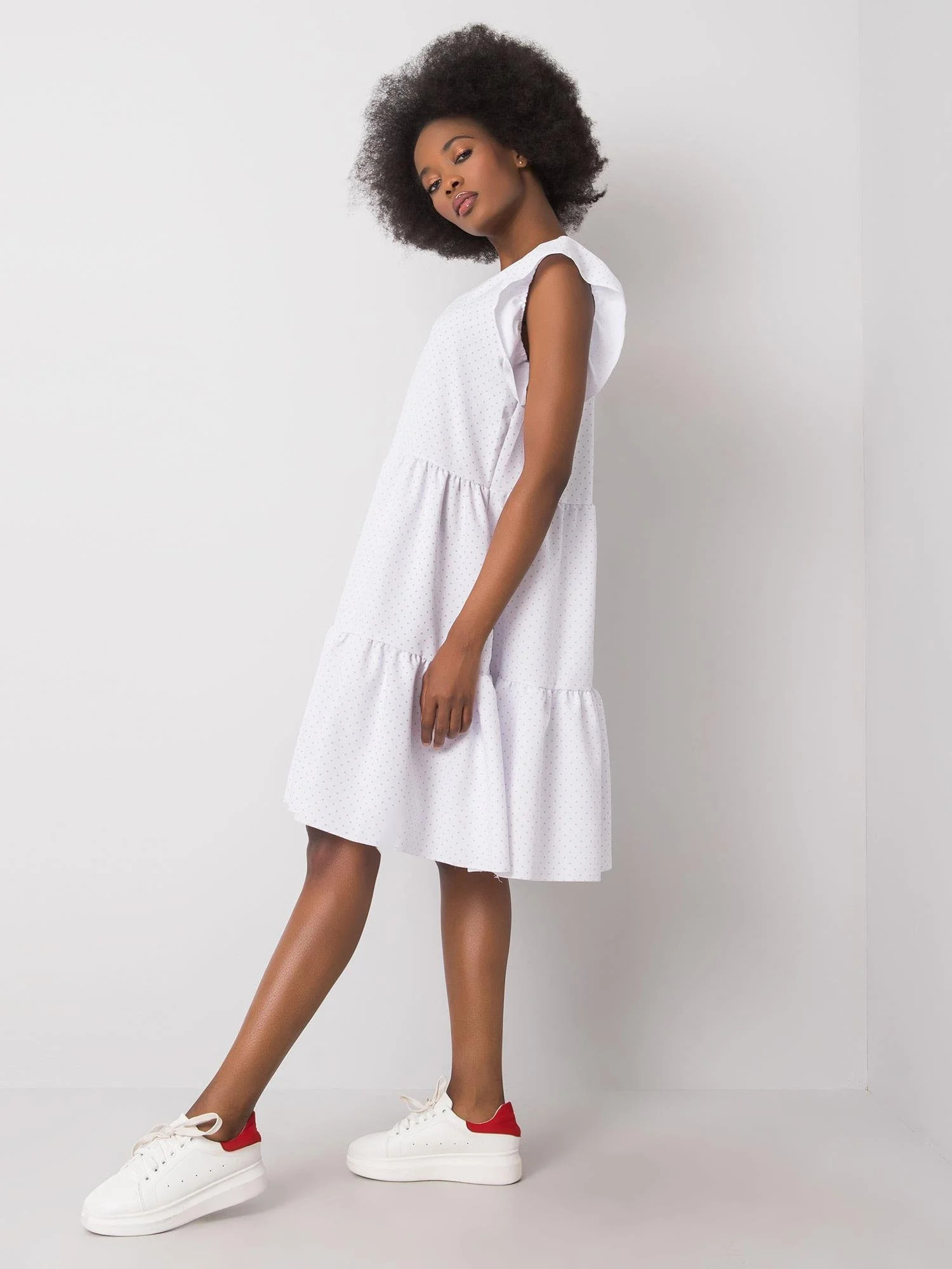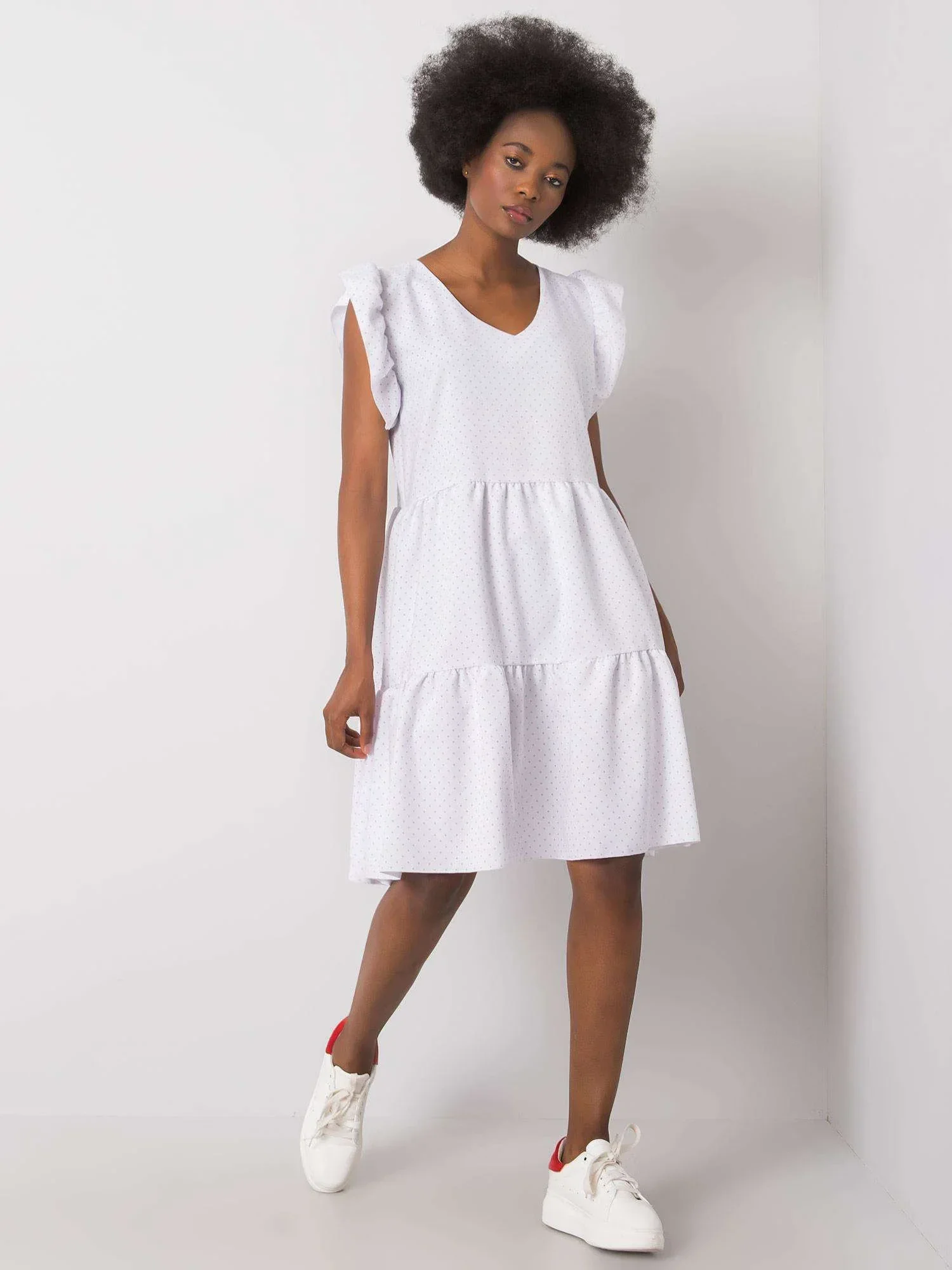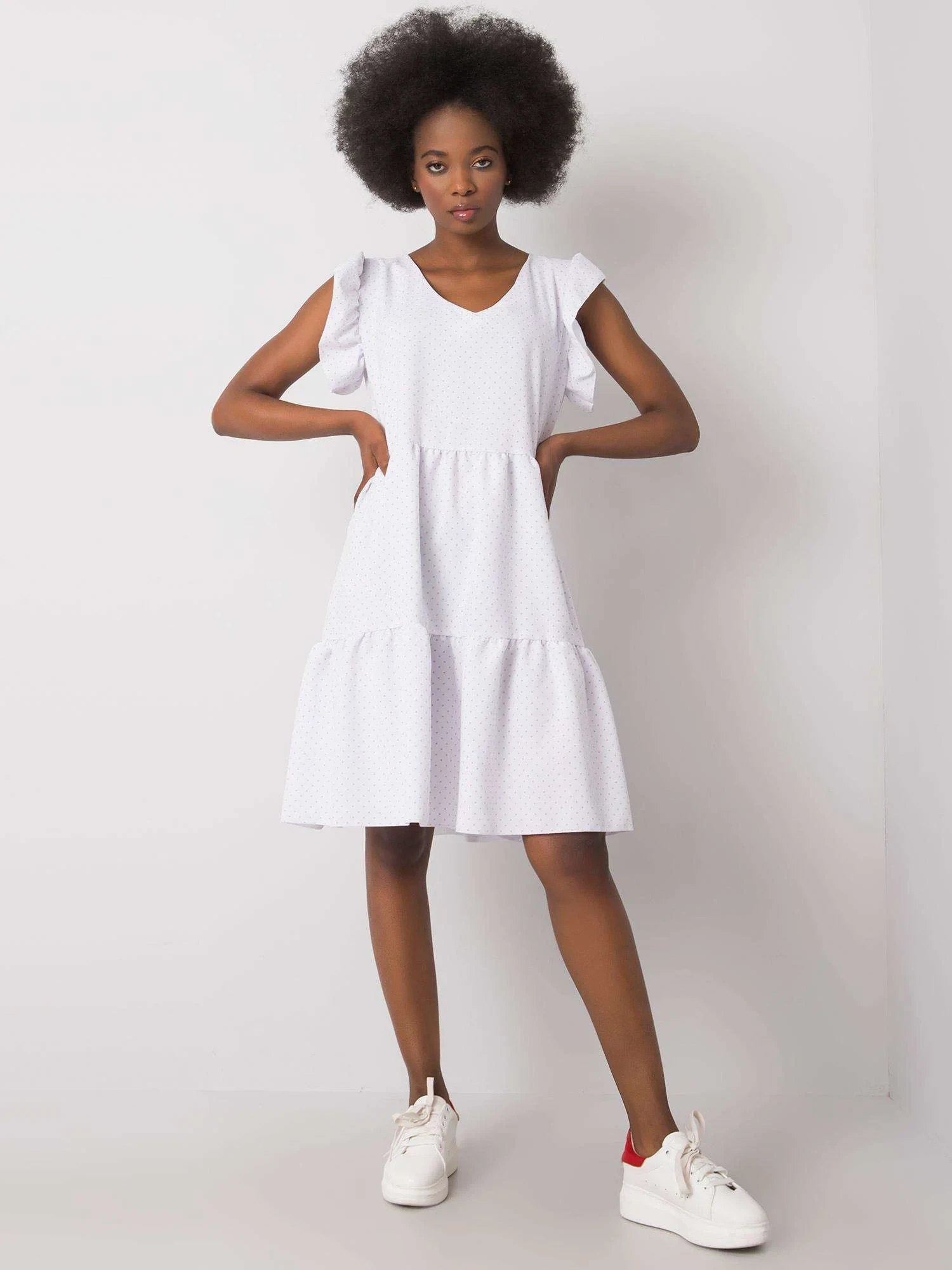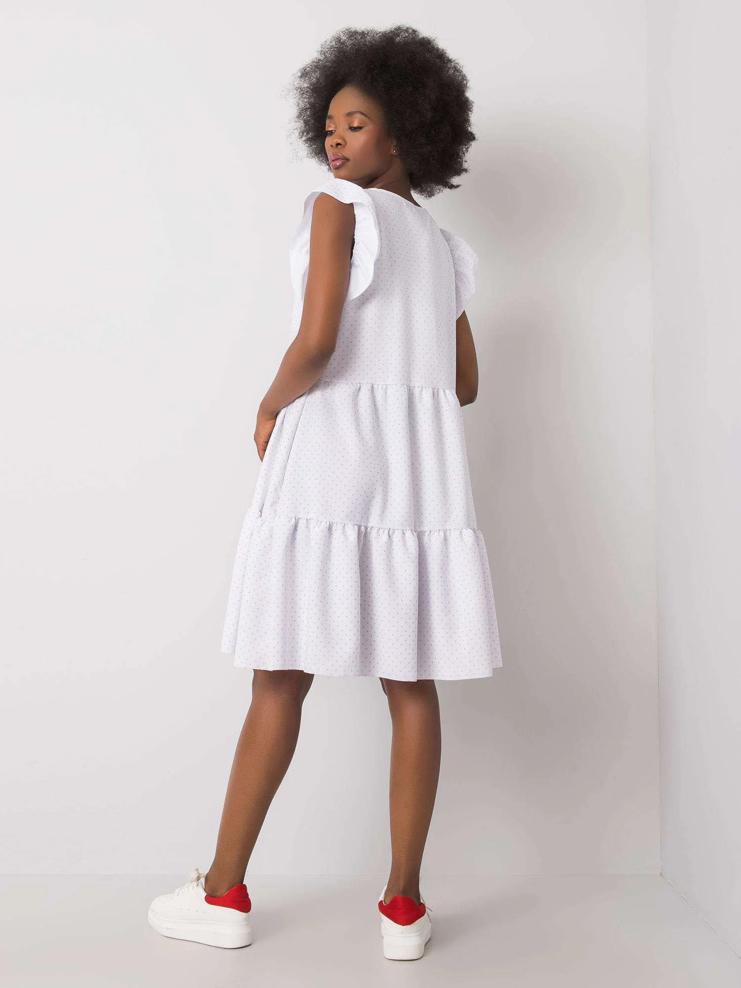 RUE PARIS Bílé šaty s volánky.