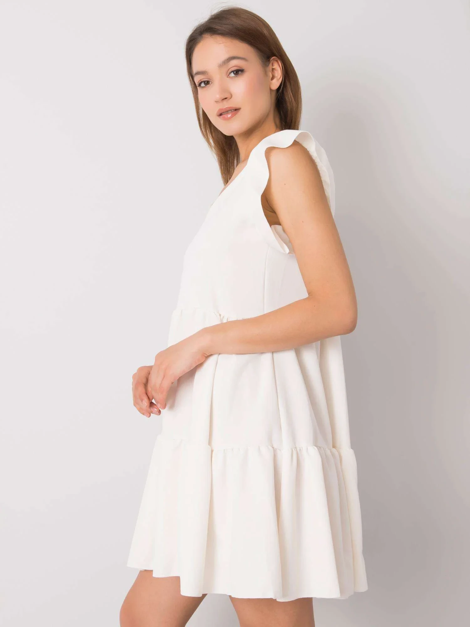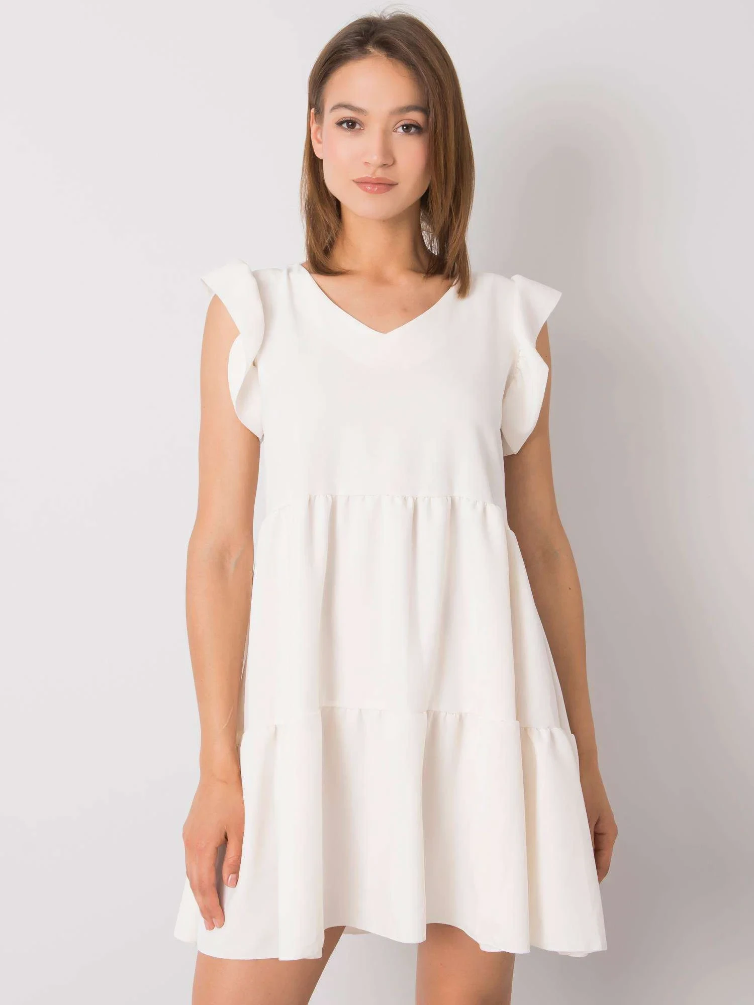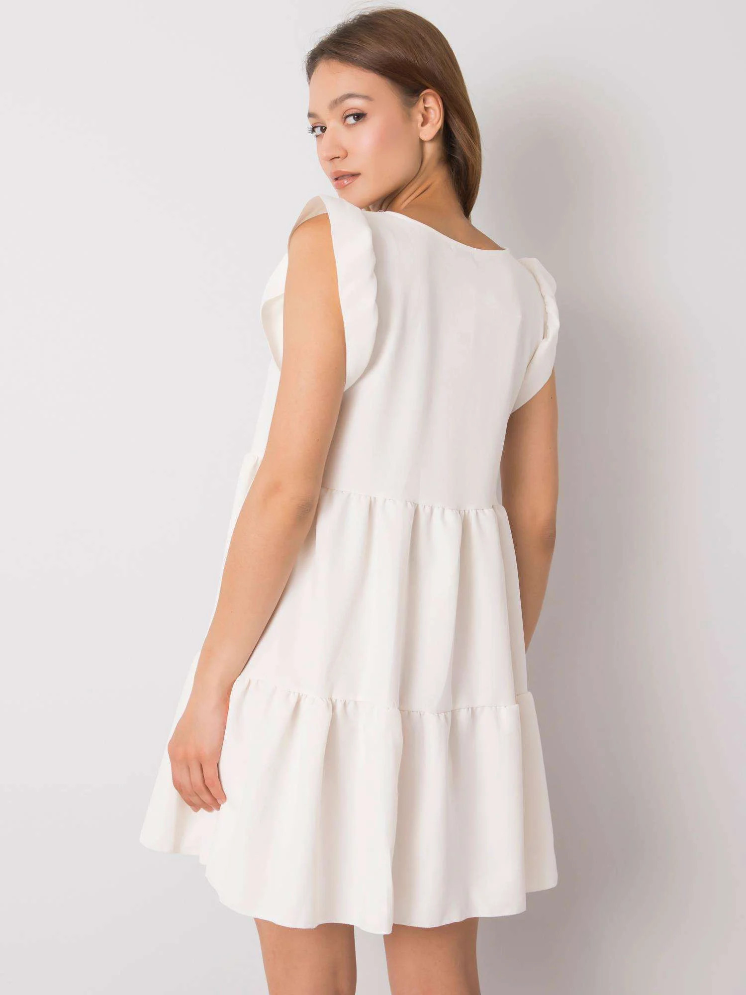 RUE PARIS Ecru šaty s volánem.