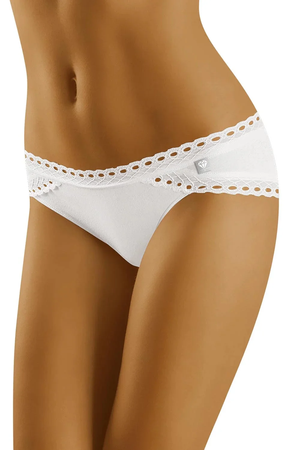 Kalhotky značky Wol-Bar. model Diamond 3514. Výrobek je vyroben z 90% bavlny, 7% elastanu, 3% bavlny. Vlastnosti výrobku: bavlněné bokové kalhotky s krajkou. dámský výrobek.