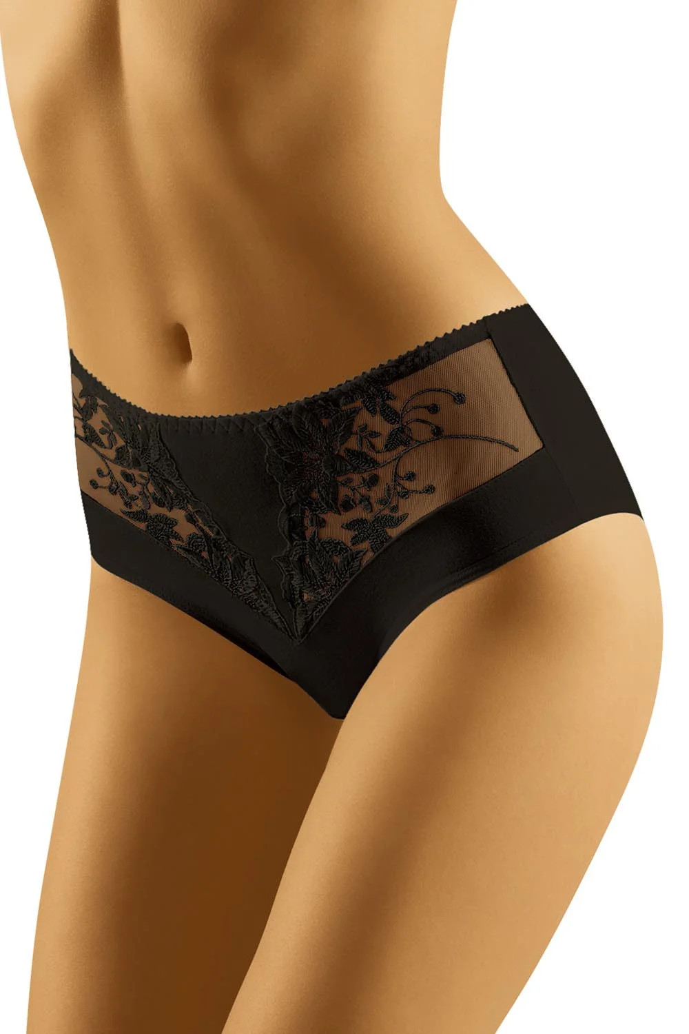 Kalhotky od Wol-Bar. Model Eco-La. Výrobek je vyroben z 90 % z bavlny, 7 % z elastanu a 3 % z polyamidu. Výhody produktu: bavlněný komfort s výšivkou. Kalhotky vysoko. Výrobek pro ženy.