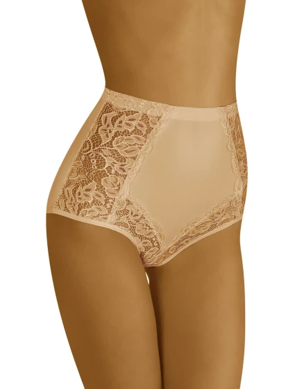 Kalhotky značky Wol-Bar. model Eleganta. výrobek je vyroben z 59 % polyamidu, 41 % elastanu. korigující oblečení. kalhotky s vysokým sedem. dámský výrobek. přednosti výrobku: korigující krajka s vysokým sedem. modelující oblečení. zeštíhlující prádlo. obsahuje silikonovou pásku pro podporu.Parametry
