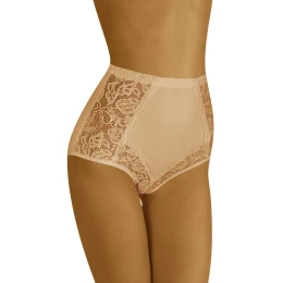 Kalhotky značky Wol-Bar. model Eleganta. výrobek je vyroben z 59 % polyamidu, 41 % elastanu. korigující oblečení. kalhotky s vysokým sedem. dámský výrobek. přednosti výrobku: korigující krajka s vysokým sedem. modelující oblečení. zeštíhlující prádlo. obsahuje silikonovou pásku pro podporu.