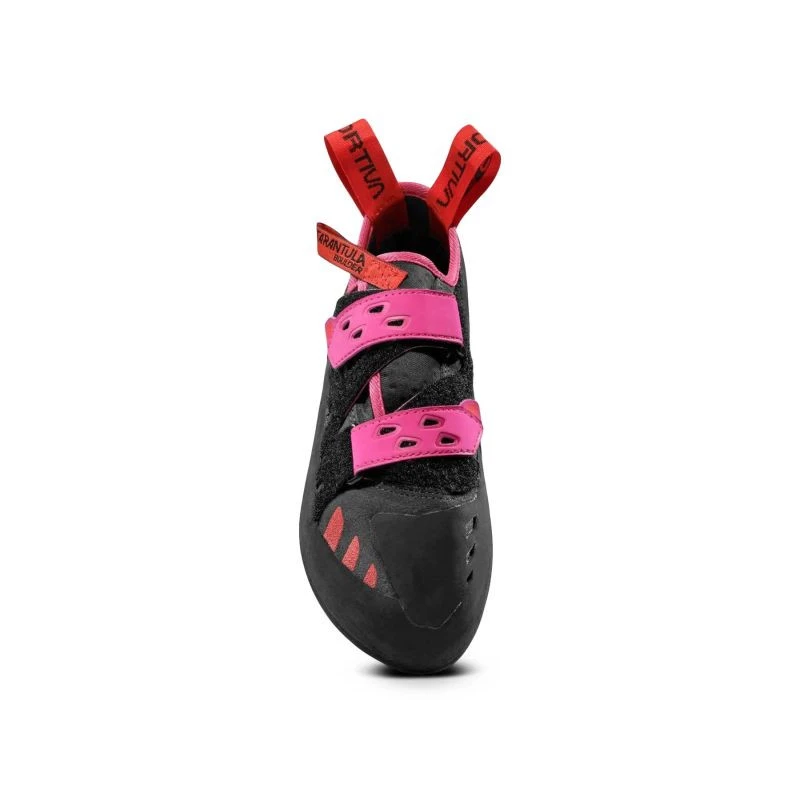 Tarantula Boulder Woman to but zaprojektowany z myślą o kobietach, które dopiero zaczynają swoją przygodę ze wspinaniem lub boulderingiem. Cholewka wykonana ze skóry zamszowej dopasowuje się do kształtu stopy i zapewnia komfort nawet przy wielu sesjach na ściance lub skałach. But ma neutralny kształt i niską asymetrię, co sprawia, że jest wygodny i nie forsuje stóp — to duży plus przy nauce techniki.