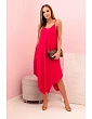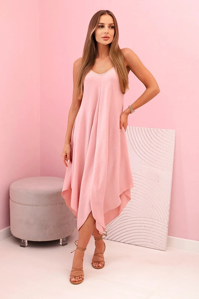 Women's dress with straps flared with an asymmetrical hem pudrově růžová
