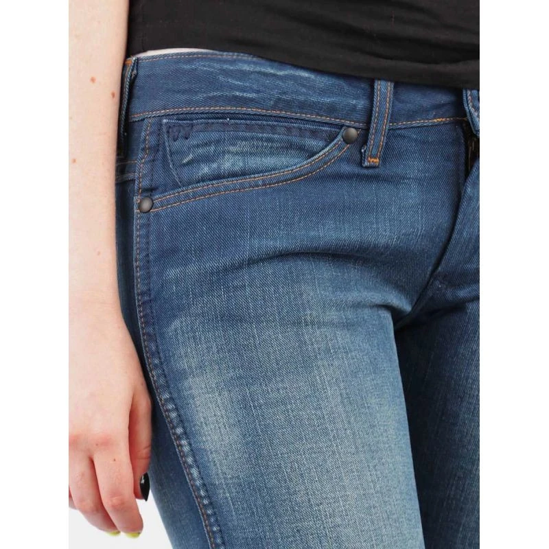 Dámské džínové kalhoty s nízkým sedem a rozšířenými nohavicemi. Zapínání na zip a signaturní černý knoflík. Na zadní kapse výrazná kožená nášivka s logem výrobce.